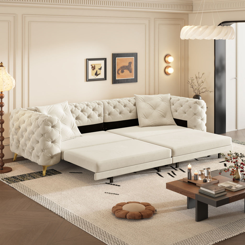 3 In 1 Convertible Sleeper, Deep Seat Pull Out Sofa Bed & Movable Ottoman For Apartment - Beige / White
