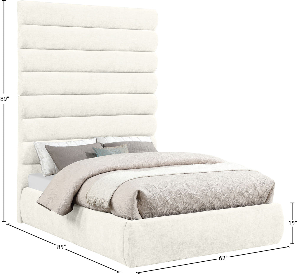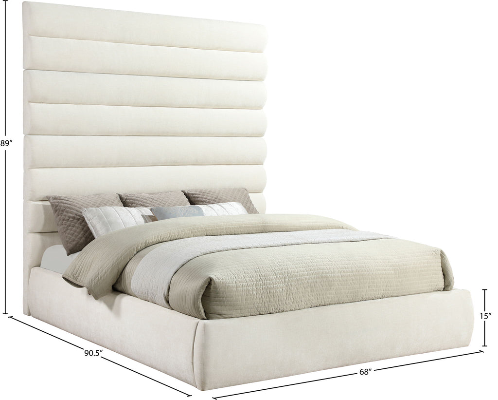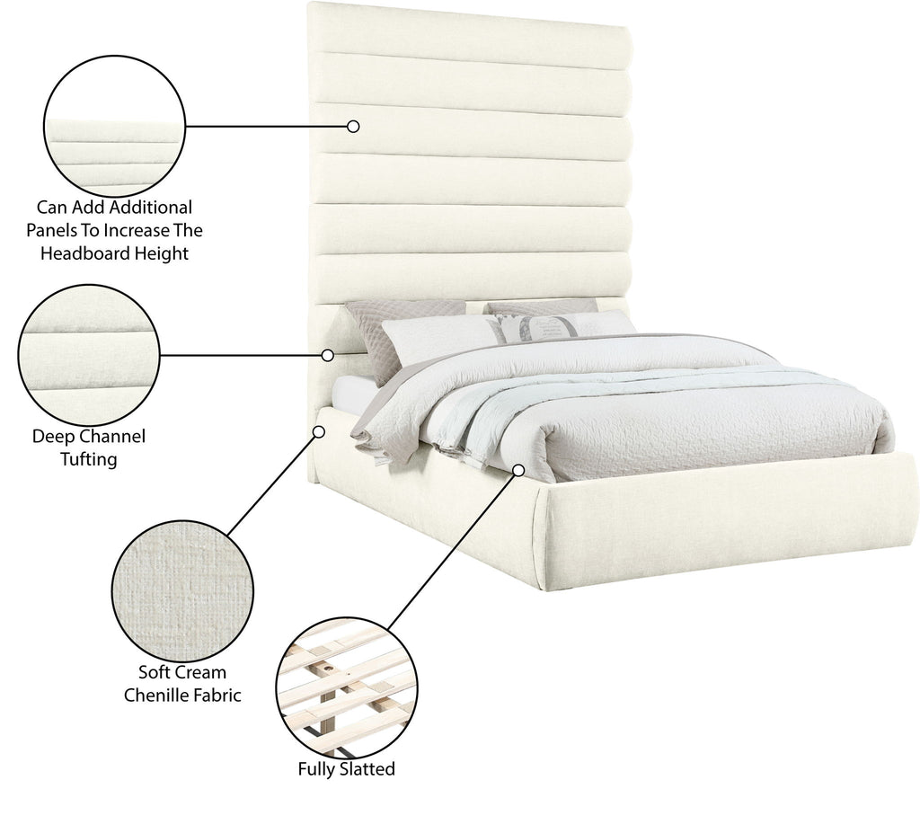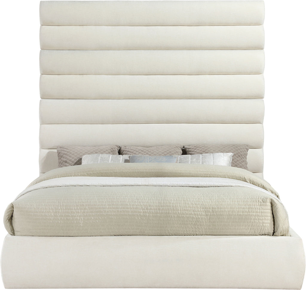 Adam - Chenille Fabric Queen Bed With 89" Headboard - Cream