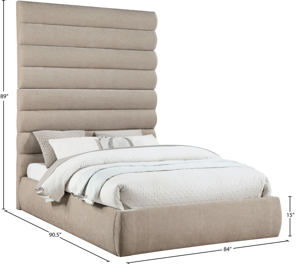 Adam - Chenille Fabric King Bed With 89" Headboard - Beige