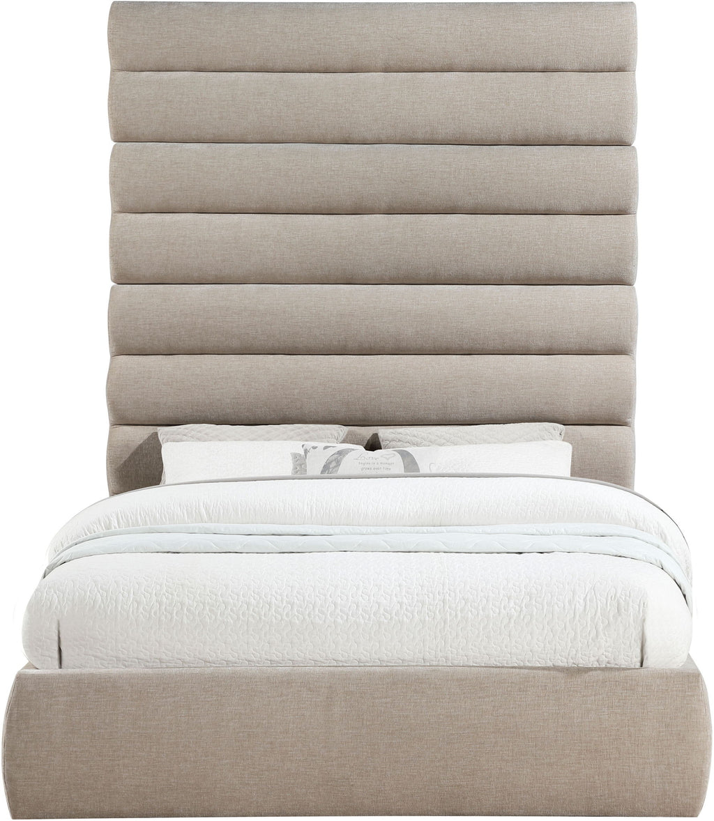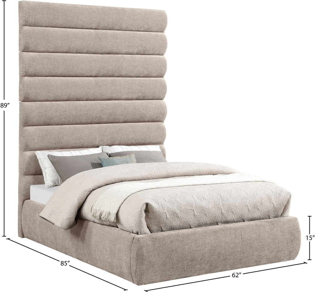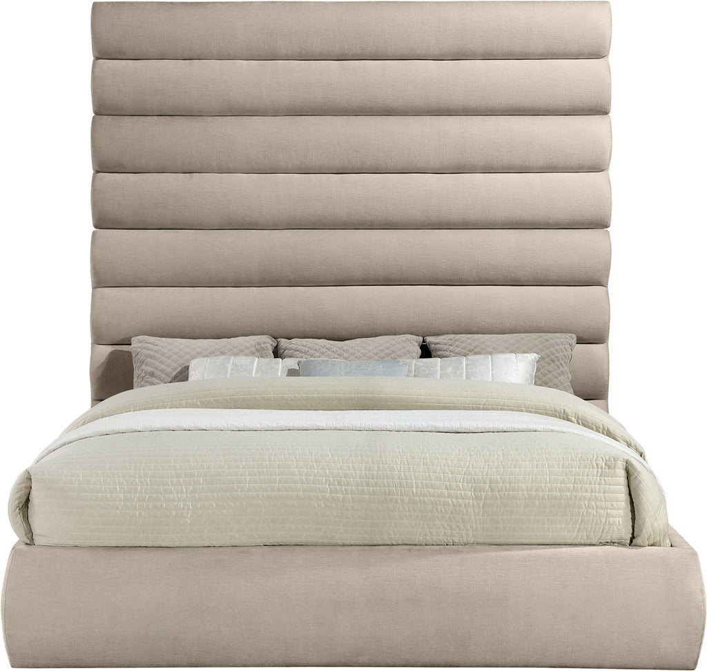 Adam - Chenille Fabric Queen Bed With 89" Headboard - Beige