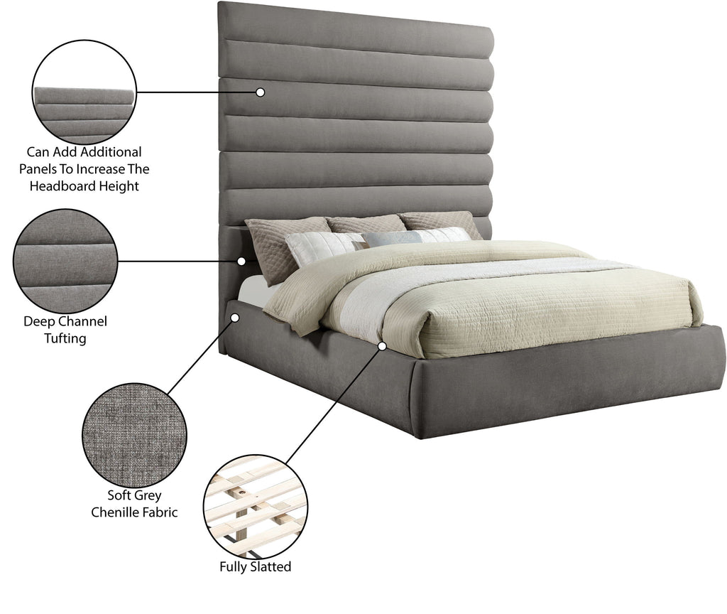 Adam - Chenille Fabric Queen Bed With 89" Headboard - Gray