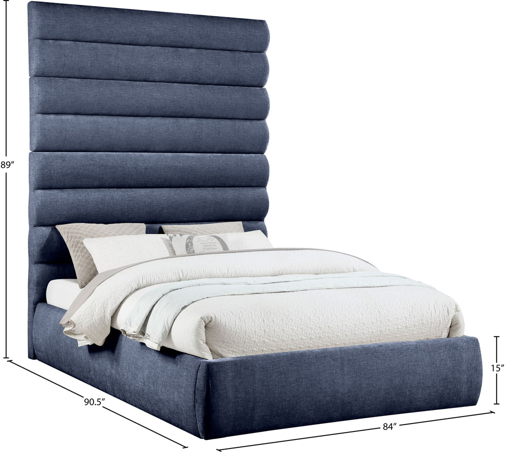 Adam - Chenille Fabric Queen Bed With 89" Headboard - Navy