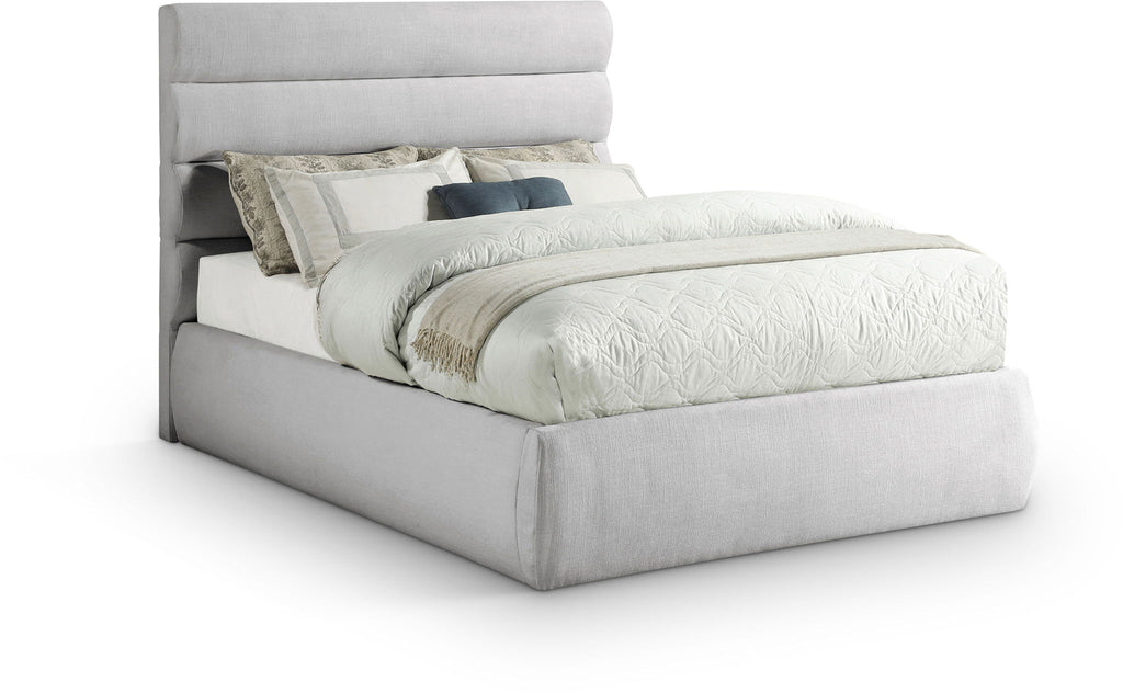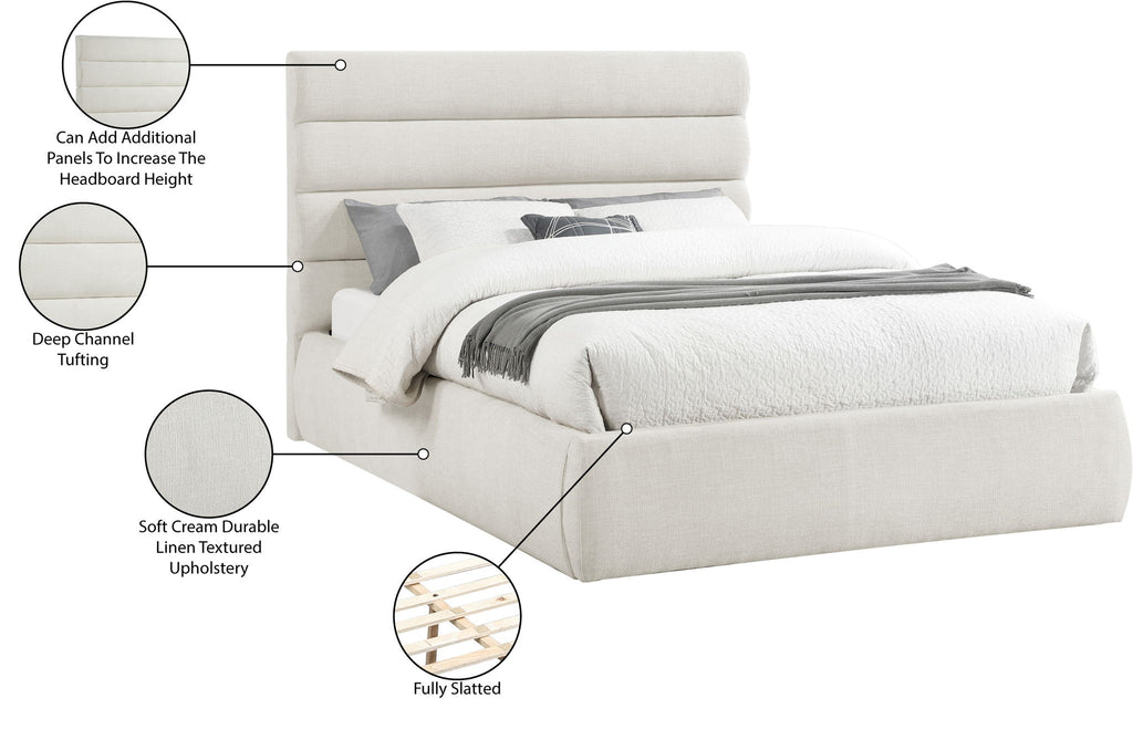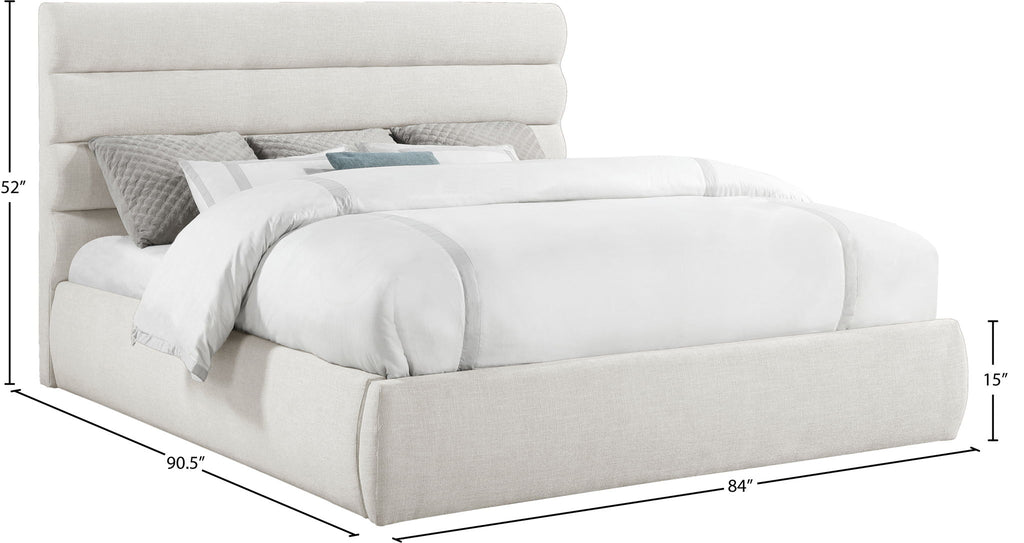 Adam - Linen Fabric King Bed With 52" Headboard - Cream