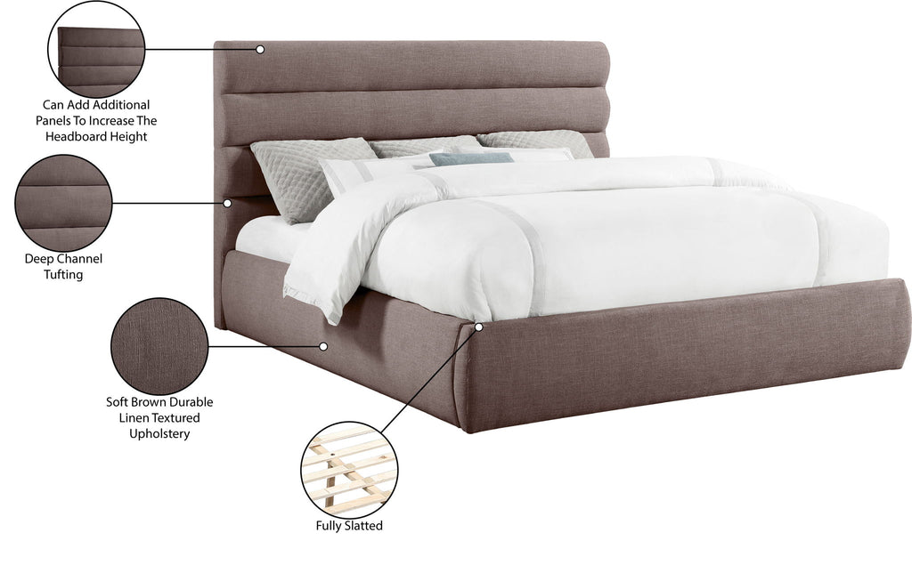 Adam - Linen Fabric King Bed With 52" Headboard - Brown