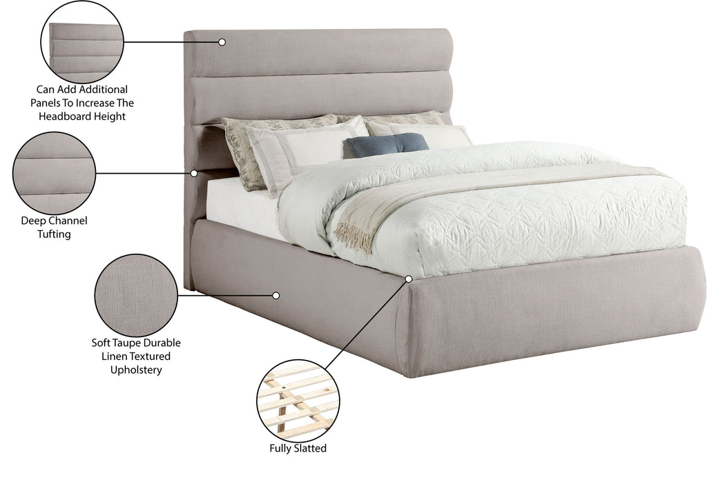 Adam - Linen Fabric Queen Bed With 52" Headboard - Taupe