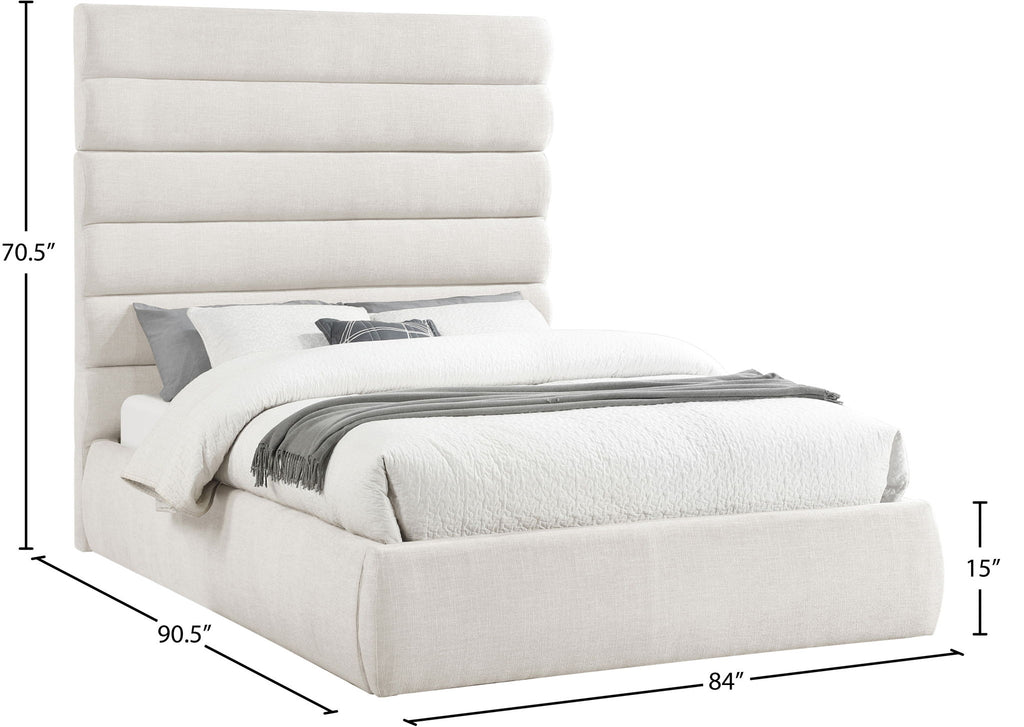 Adam - Linen Fabric King Bed With 70.5" Headboard - Cream