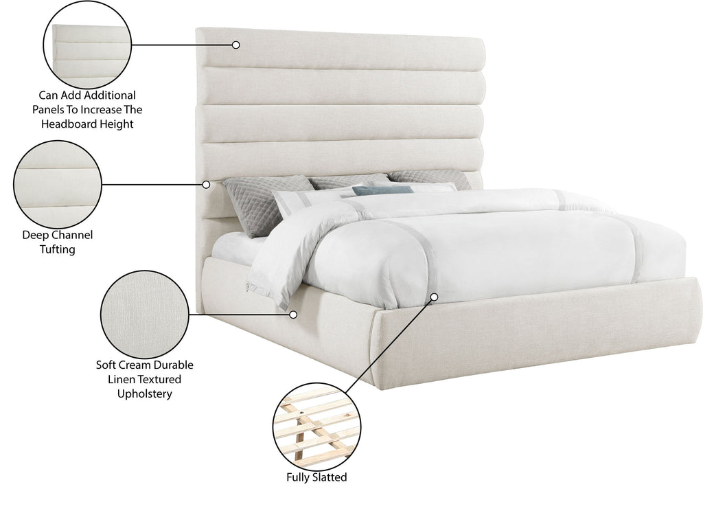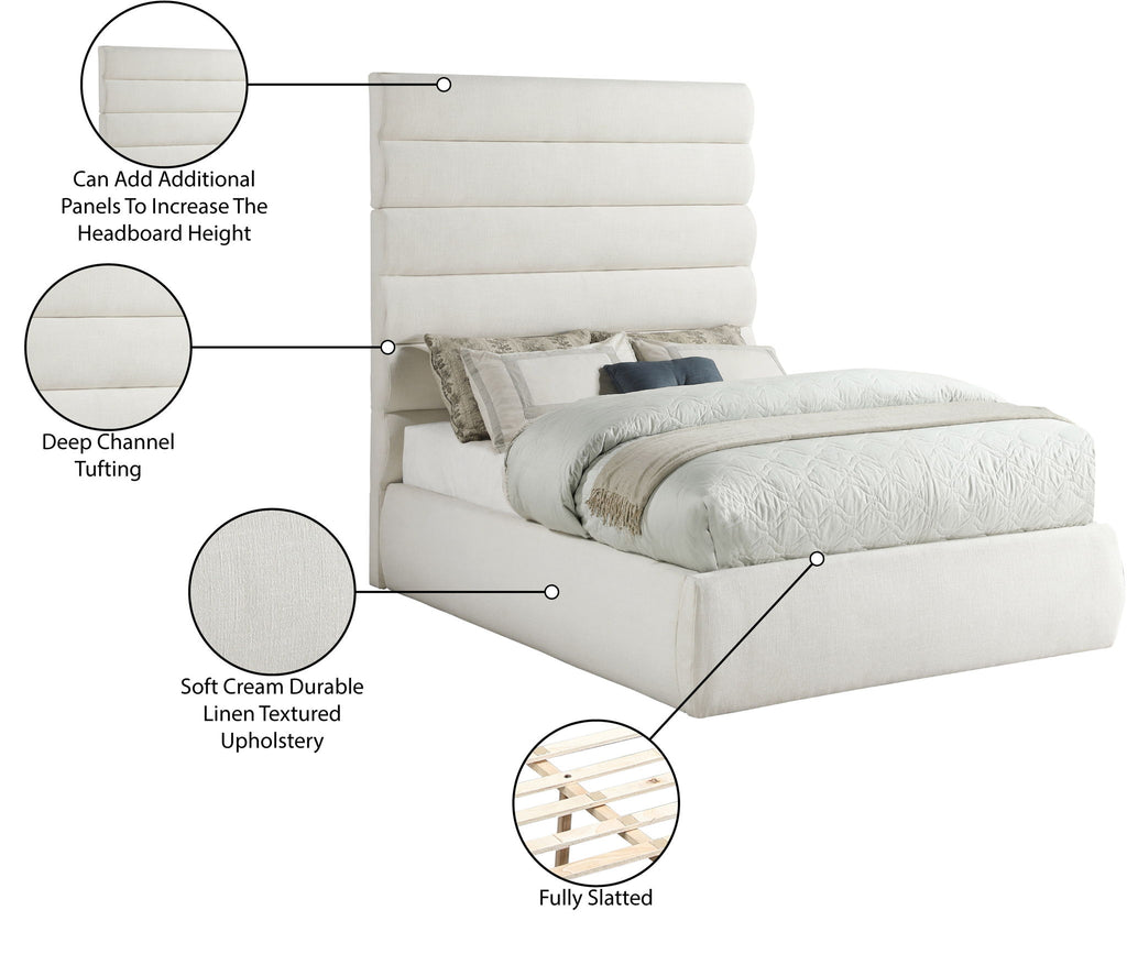 Adam - Linen Fabric Queen Bed With 70.5" Headboard - Cream