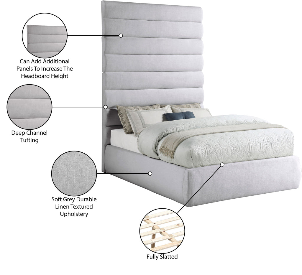 Adam - Linen Fabric Queen Bed With 89" Headboard - Gray