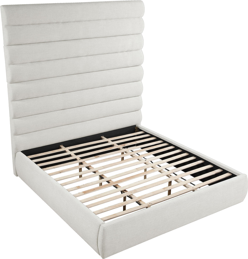 Adam - Linen Fabric King Bed With 89" Headboard - Cream