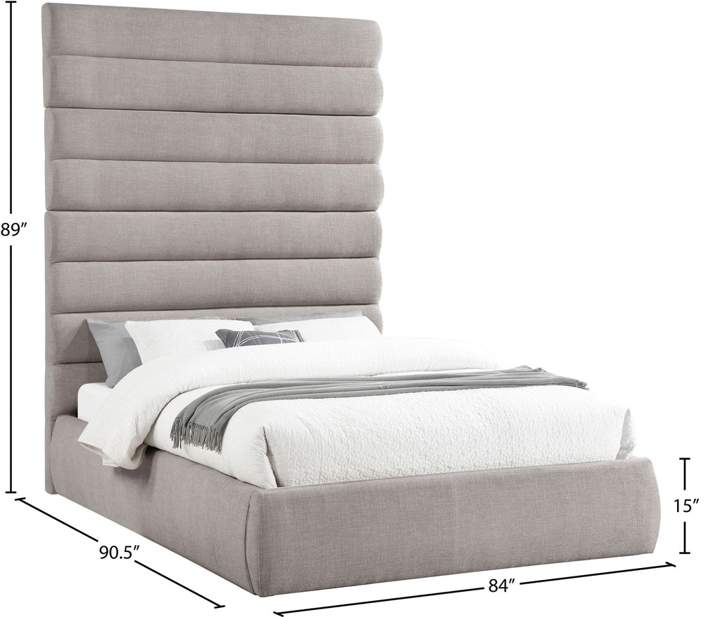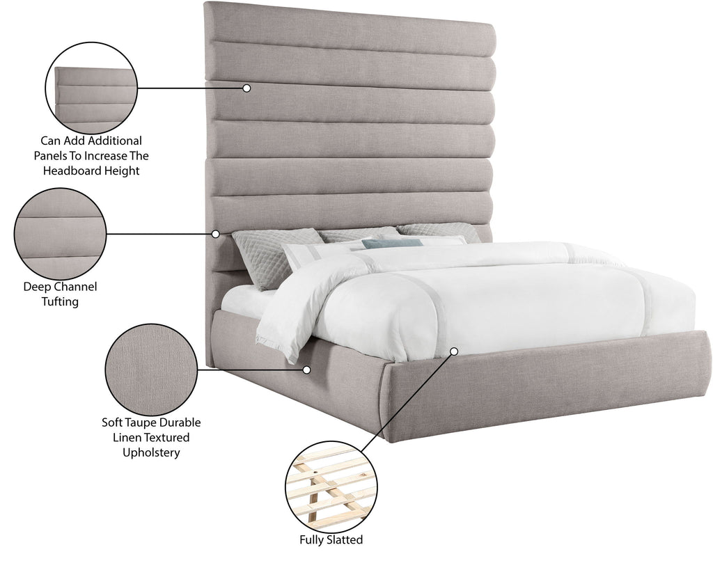 Adam - Linen Fabric King Bed With 89" Headboard - Taupe