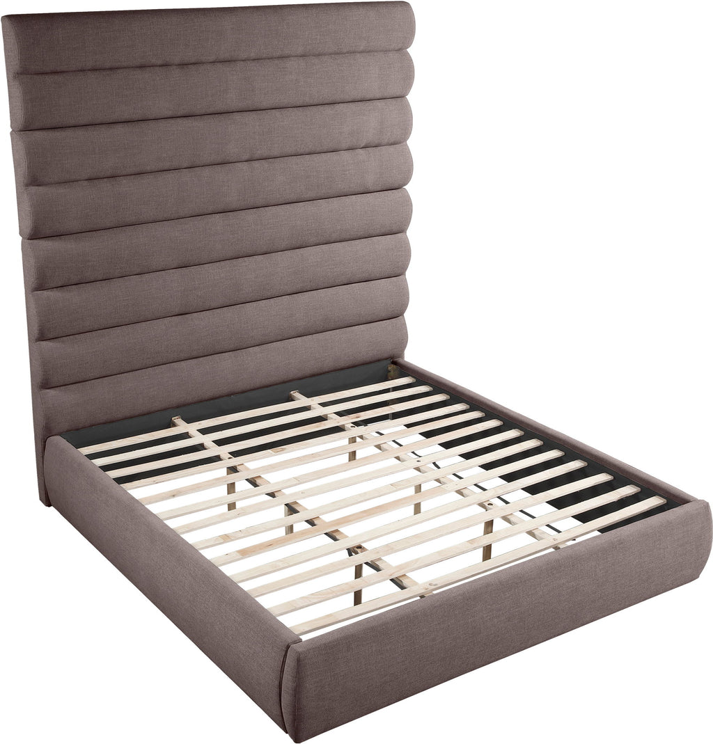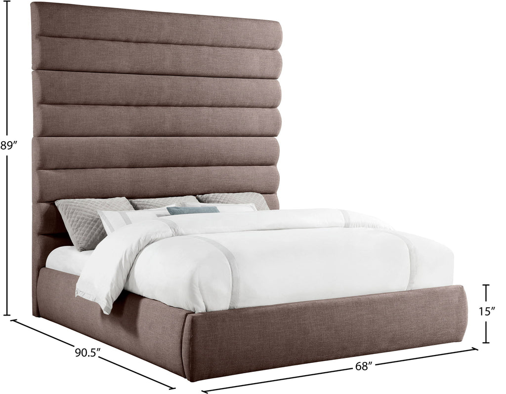 Adam - Linen Fabric King Bed With 89" Headboard - Brown