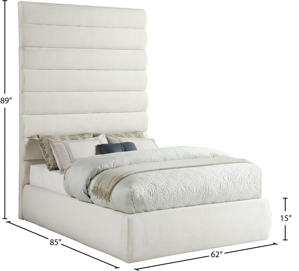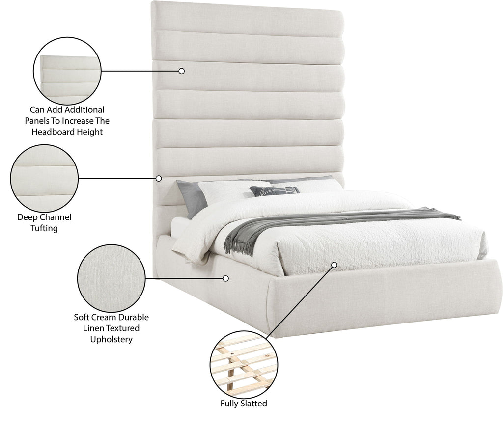 Adam - Linen Fabric Queen Bed With 89" Headboard - Cream