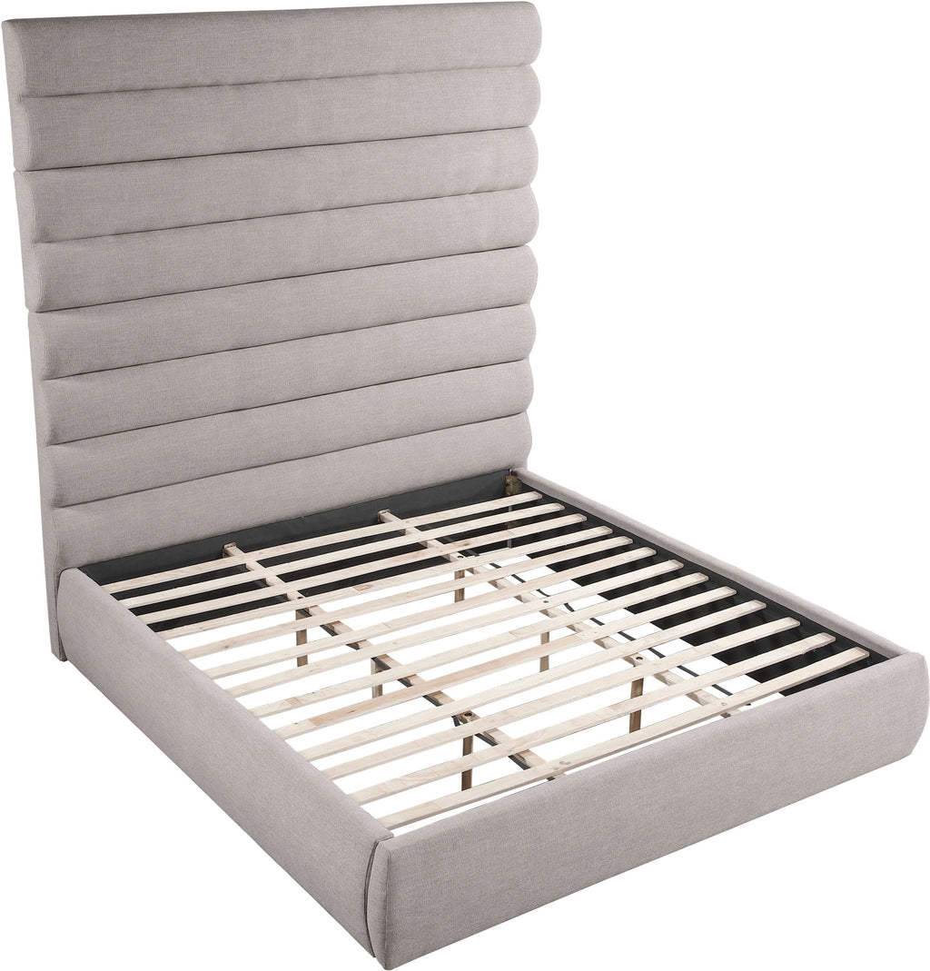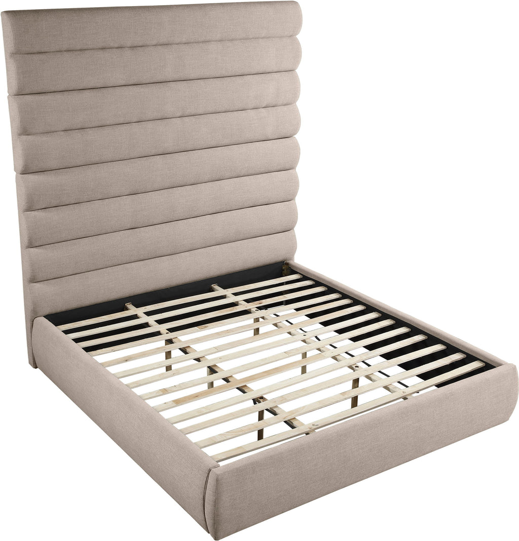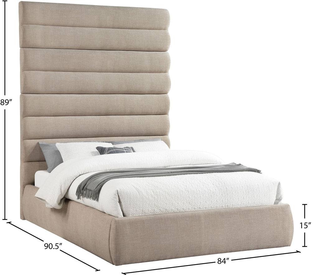 Adam - Linen Fabric King Bed With 89" Headboard - Beige