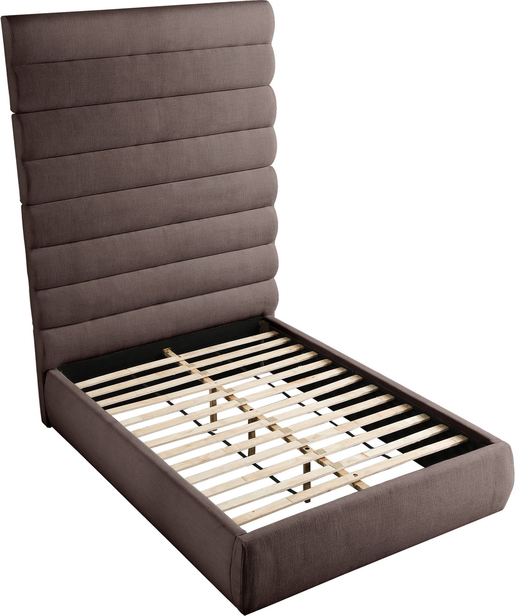 Adam - Linen Fabric Queen Bed With 89" Headboard - Brown