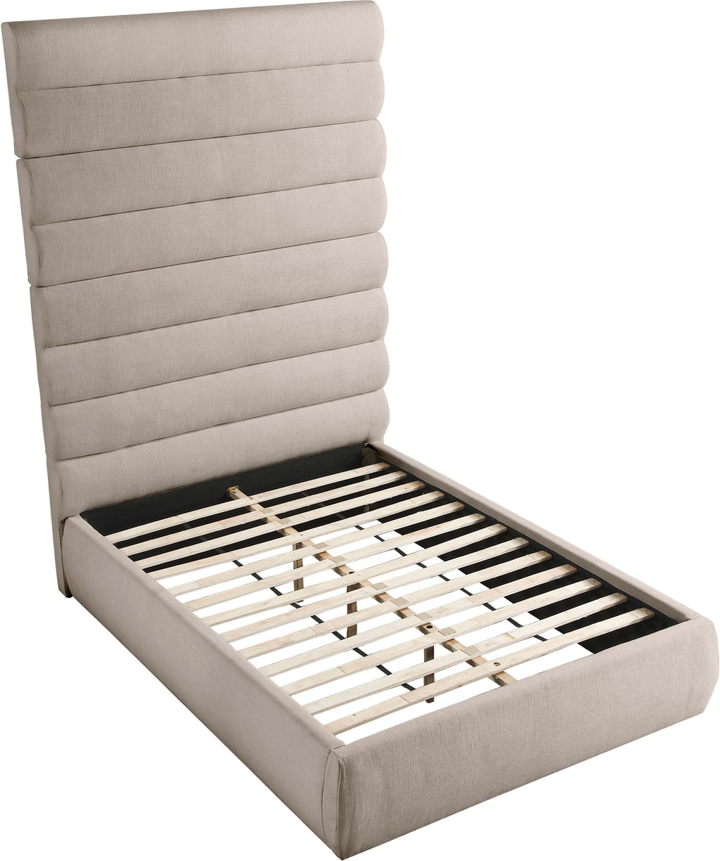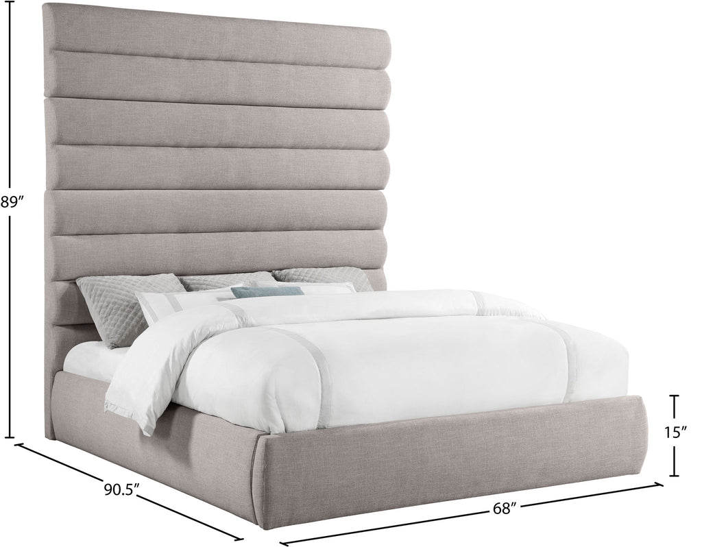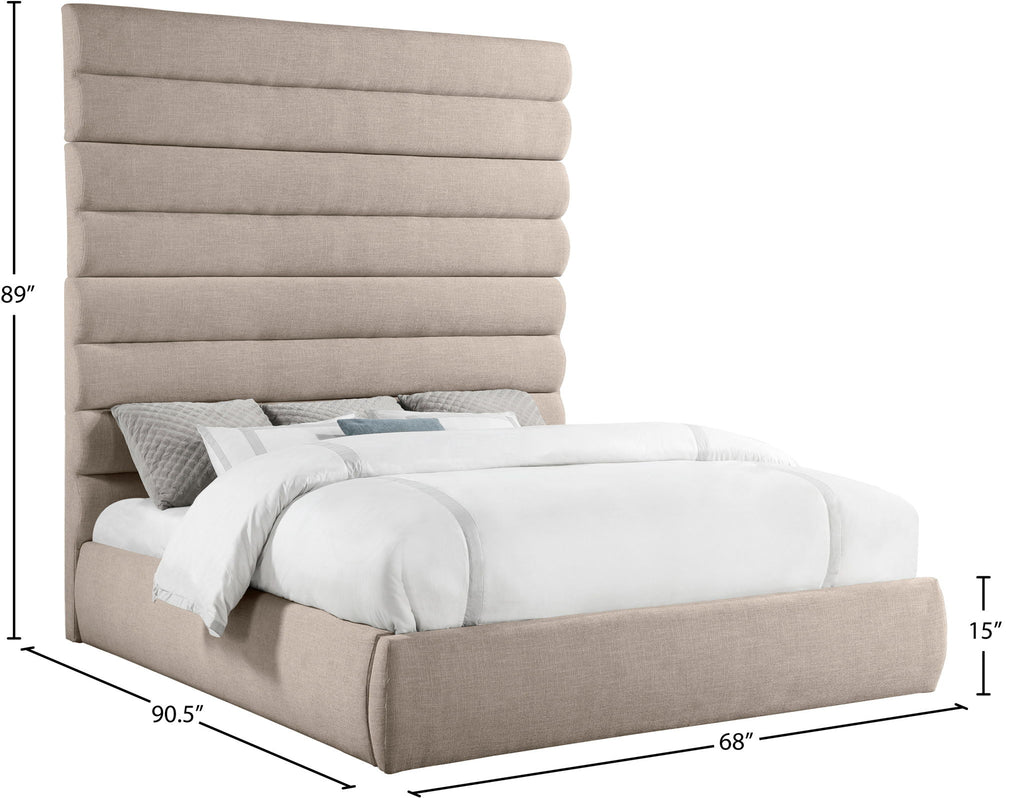 Adam - Linen Fabric Queen Bed With 89" Headboard - Beige
