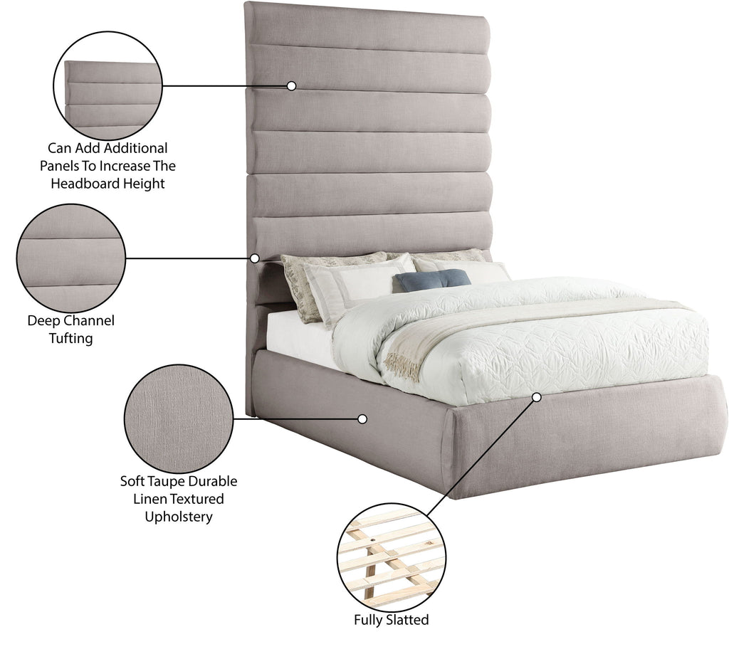 Adam - Linen Fabric Queen Bed With 89" Headboard - Taupe