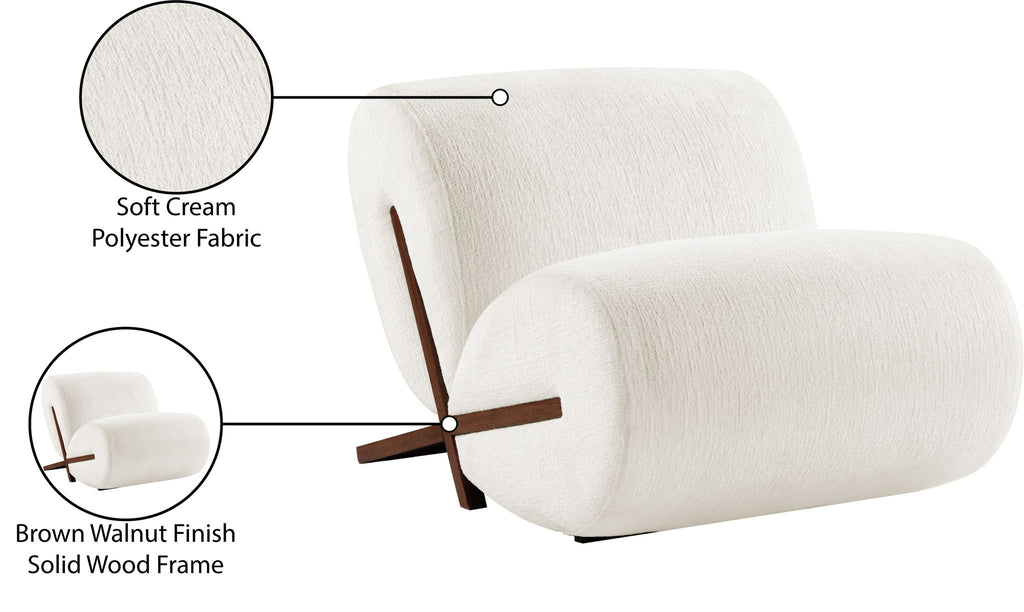 The Akira fabric upholstered accent chair features soft polyester fabric and a black finish solid wood frame, blending comfort with striking design. Its bold, Art Deco-inspired silhouette showcases a sculptural form, making it a standout piece in any modern space. With plush upholstery and a uniquely structured wooden base, this chair offers both visual intrigue and cozy relaxation-perfect for those who appreciate artistic yet functional furniture.