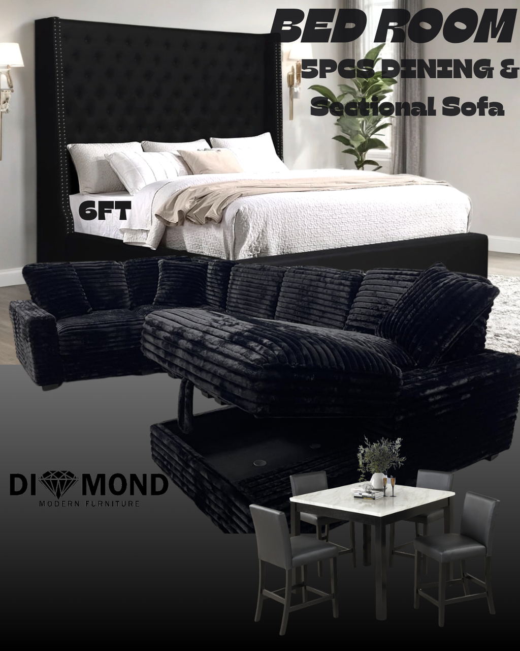 Transform your home with our stunning Alison Black 3 Room Package Deal, perfect for a stylish and cohesive look!