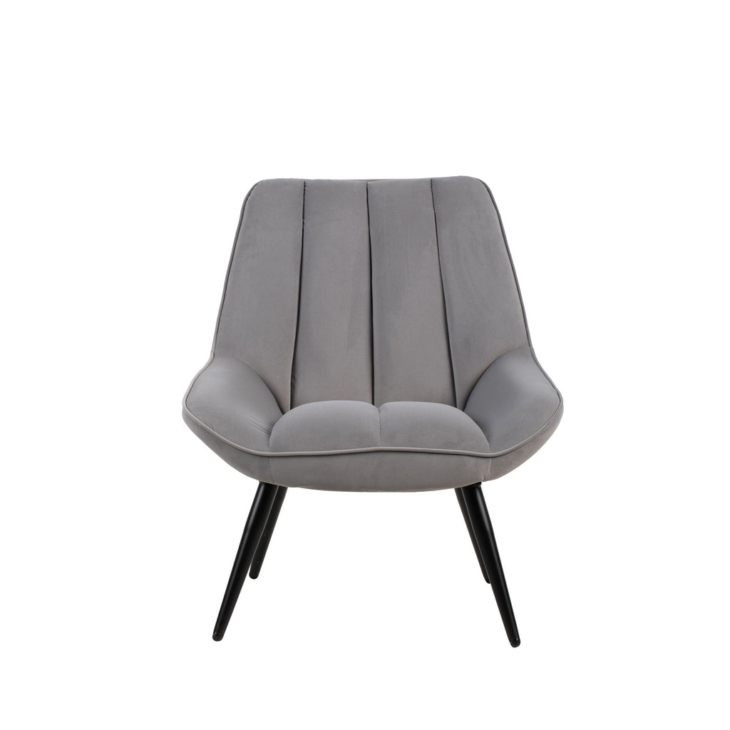 The Astrid Velvet Accent Chair combines style and comfort to create an inviting addition to any room. This chair features a channel tufted back and wraparound arms that offer both chic design and cozy seating. Made from 100% polyester, the luxurious velvet fabric is silky soft to the touch and easy to care for, blending elegance with everyday practicality. The sturdy black iron legs provide exceptional stability, resisting bending or breaking, while offering a striking contrast to the upholstery. This accent chair is the perfect blend of modern design and lasting comfort, making it an excellent choice for any space.