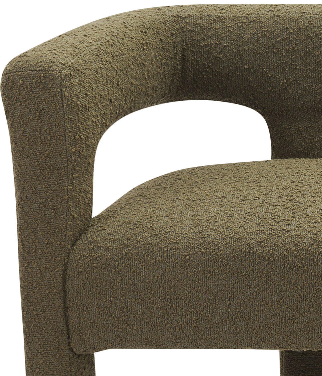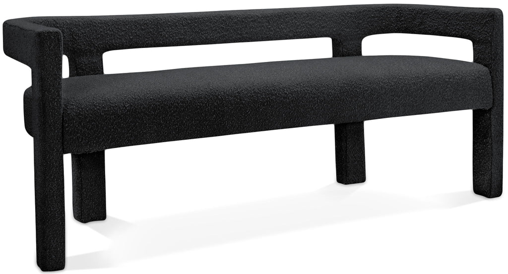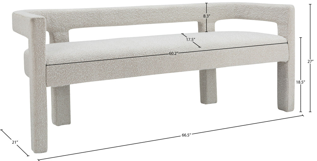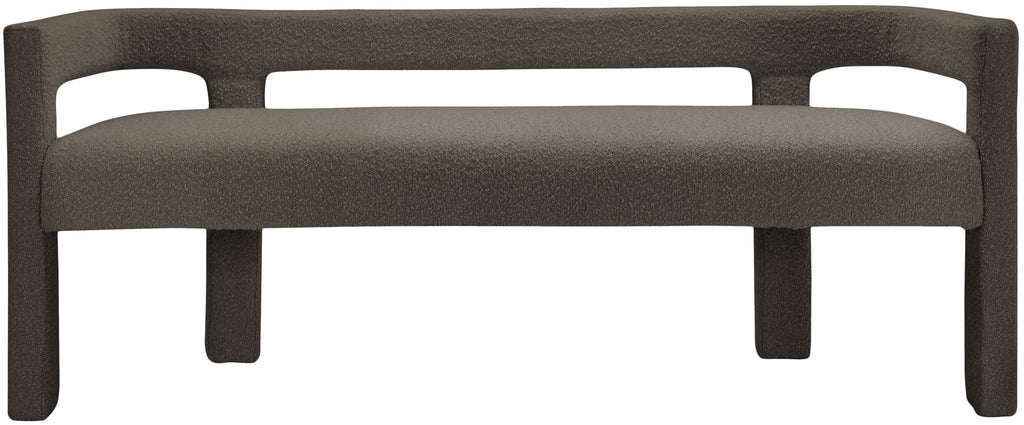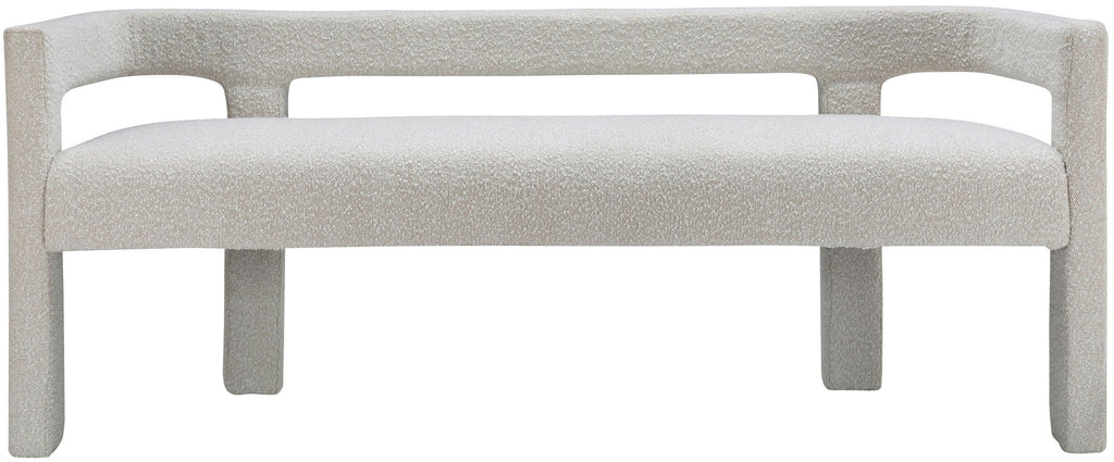 Get comfortable with this Athena bench featuring minimalistic design elements and a simple footprint. Artfully designed, this bench is made for comfort with a rounded footprint that hugs your back while you sit and relax with friends. The bench is covered top to bottom in rich boucle fabric, so it's super soft to the touch and elegant to the eye.
