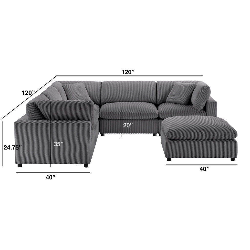 - Modular Design: Configurable layout with armless chairs, corner wedges, and ottoman for flexible arrangement