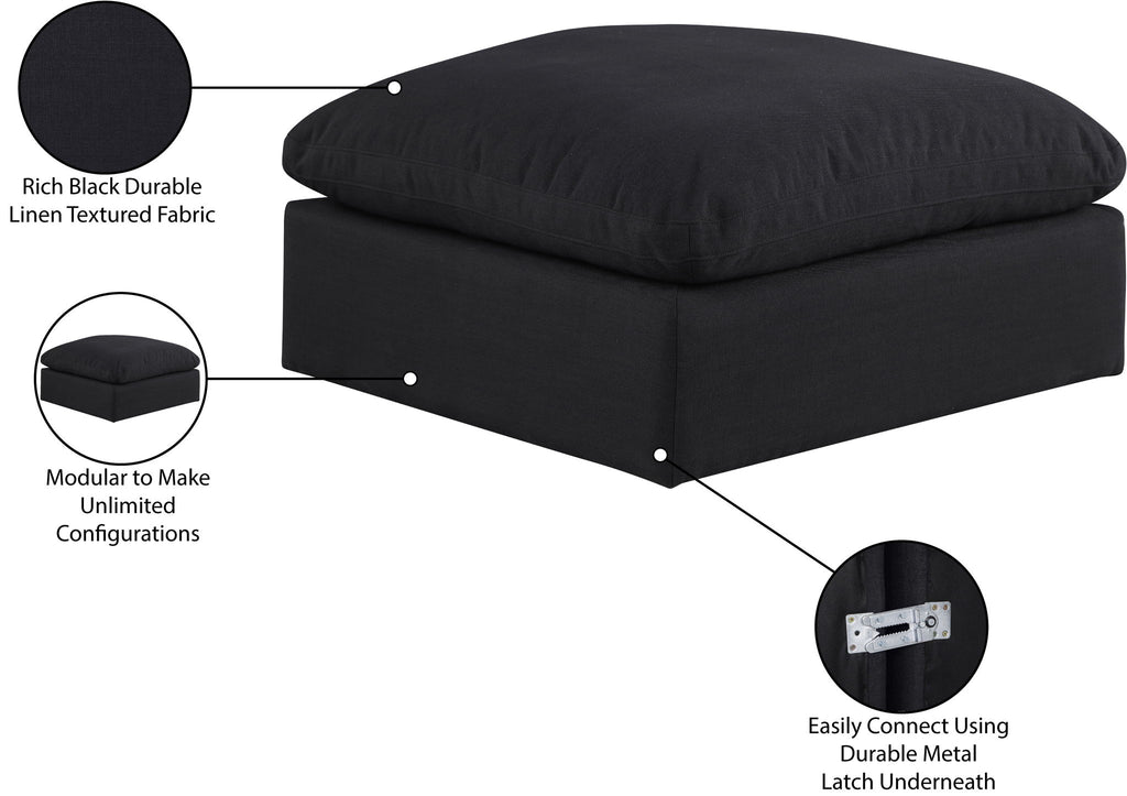 Give your space a whole new look with this Comfy linen textured fabric ottoman. This handsome ottoman fits nicely with other items in the Comfy collection and is a versatile seating option designed for adaptability, comfort and style. Wrapped in rich durable linen textured fabric upholstery, this ottoman offers a plush embrace of overstuffed down feather cushions, carefully crafted to deliver the highest level of comfort. The perfect seat for creating an oasis for relaxation, this ottoman has thick foam surrounding its frame for added support and coziness.