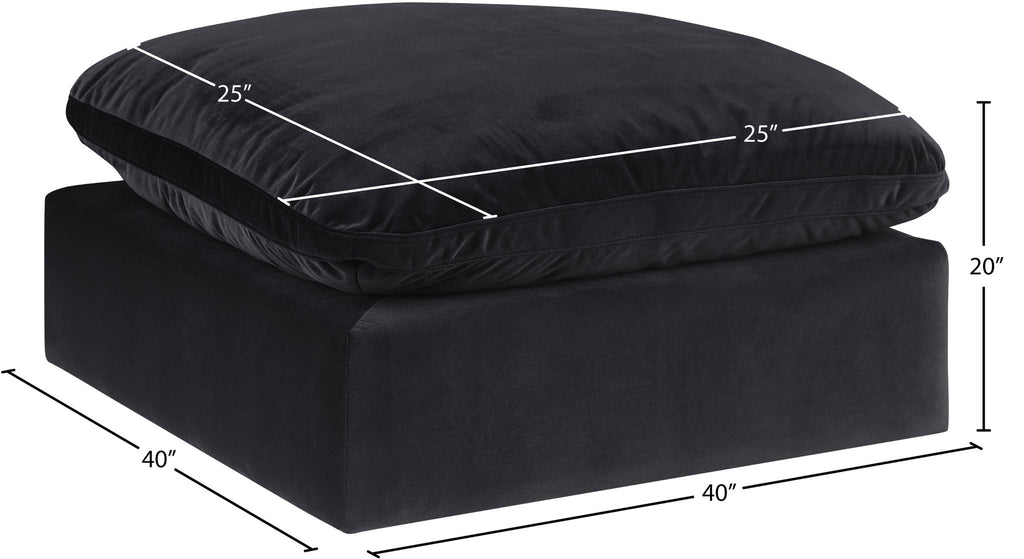 Give your space a whole new look with this Comfy velvet ottoman. This handsome ottoman fits nicely with other items in the Comfy collection and is a versatile seating option designed for adaptability, comfort and style. Wrapped in rich durable velvet upholstery, this ottoman offers a plush embrace of overstuffed down feather cushions, carefully crafted to deliver the highest level of comfort. The perfect seat for creating an oasis for relaxation, this ottoman has thick foam surrounding its frame for added support and coziness.
