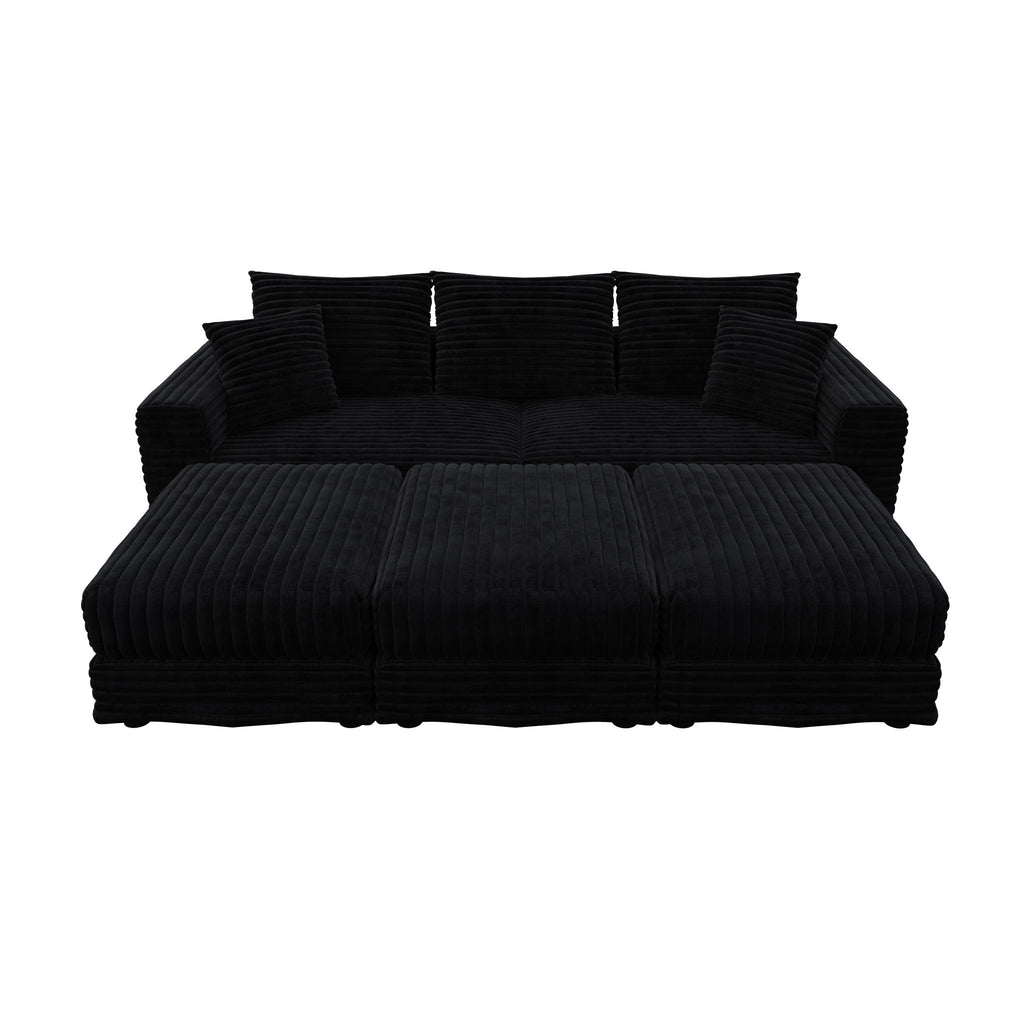 3 Seat Sofa, Comfy Upholstered Cloud Couch With Soft Pillows And 3 Ottomans - Black