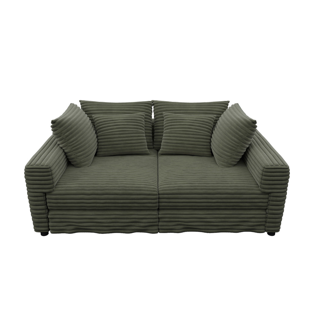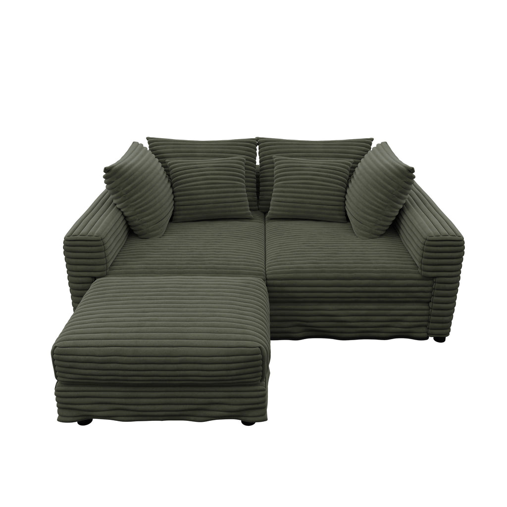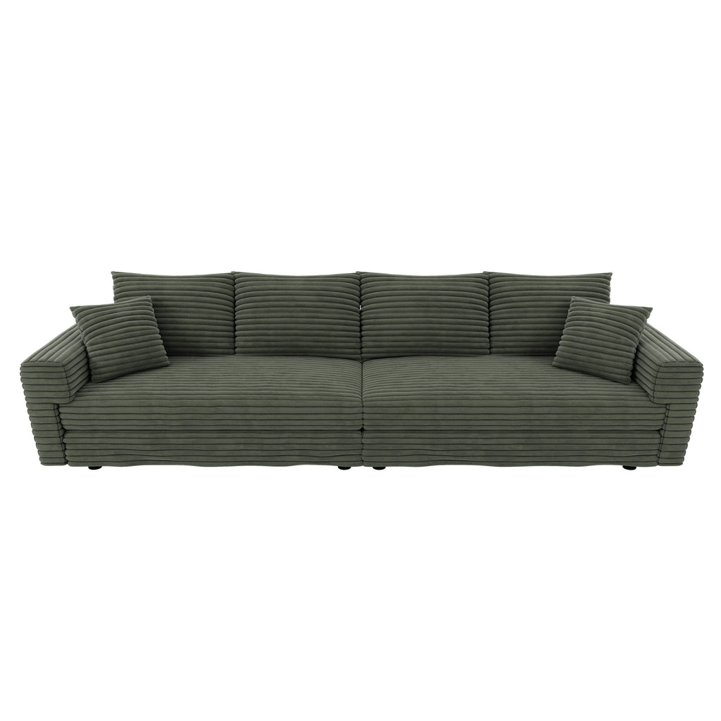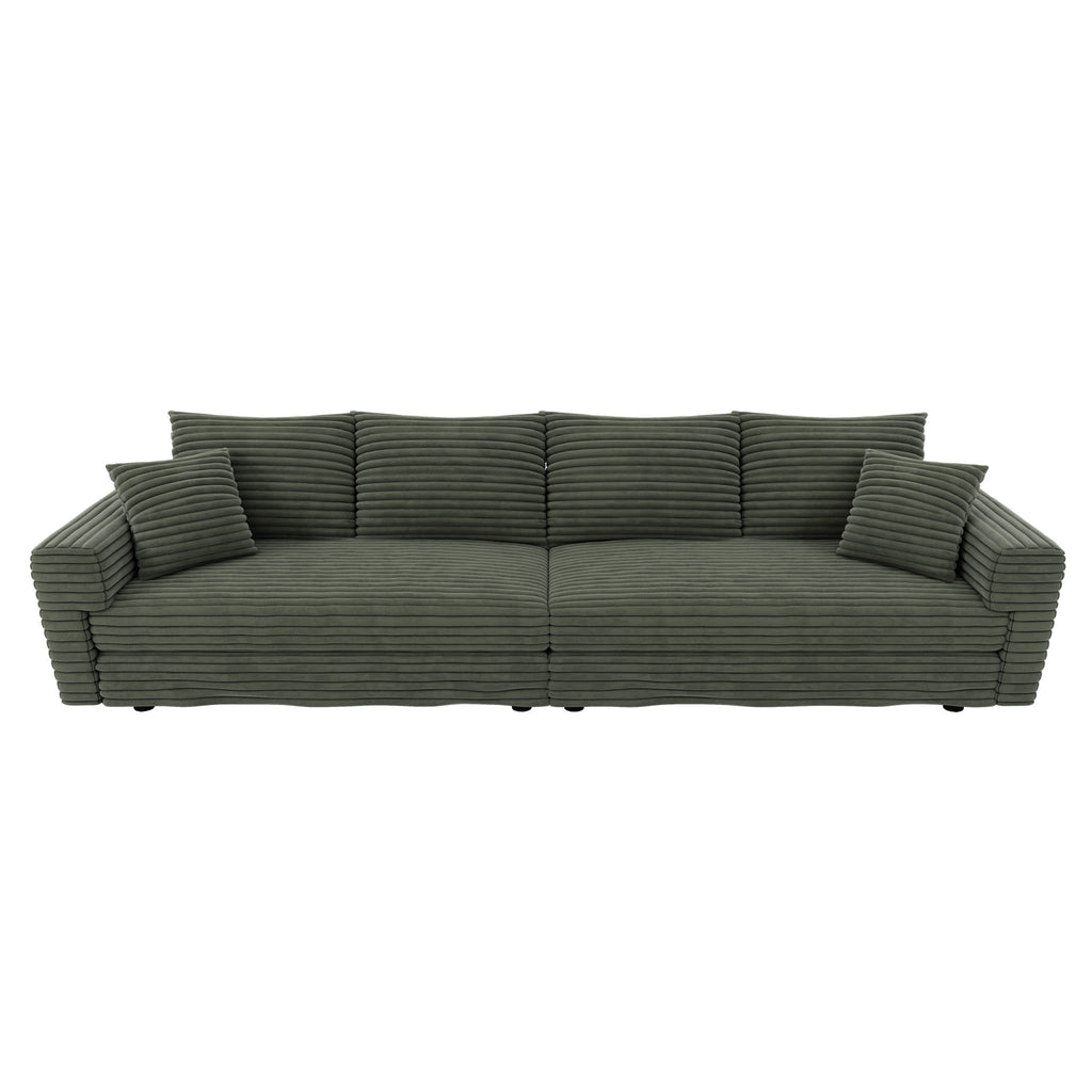 4 Seat Sofa, Comfy Upholstered Cloud Couch, Deep Seat With Soft Pillows And Movable Ottoman, Convertible For Living Room - Green
