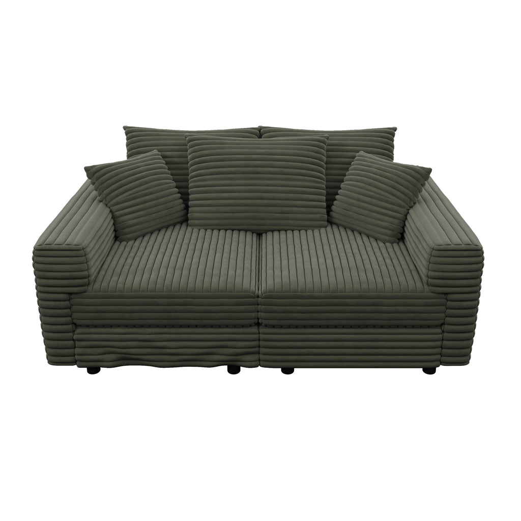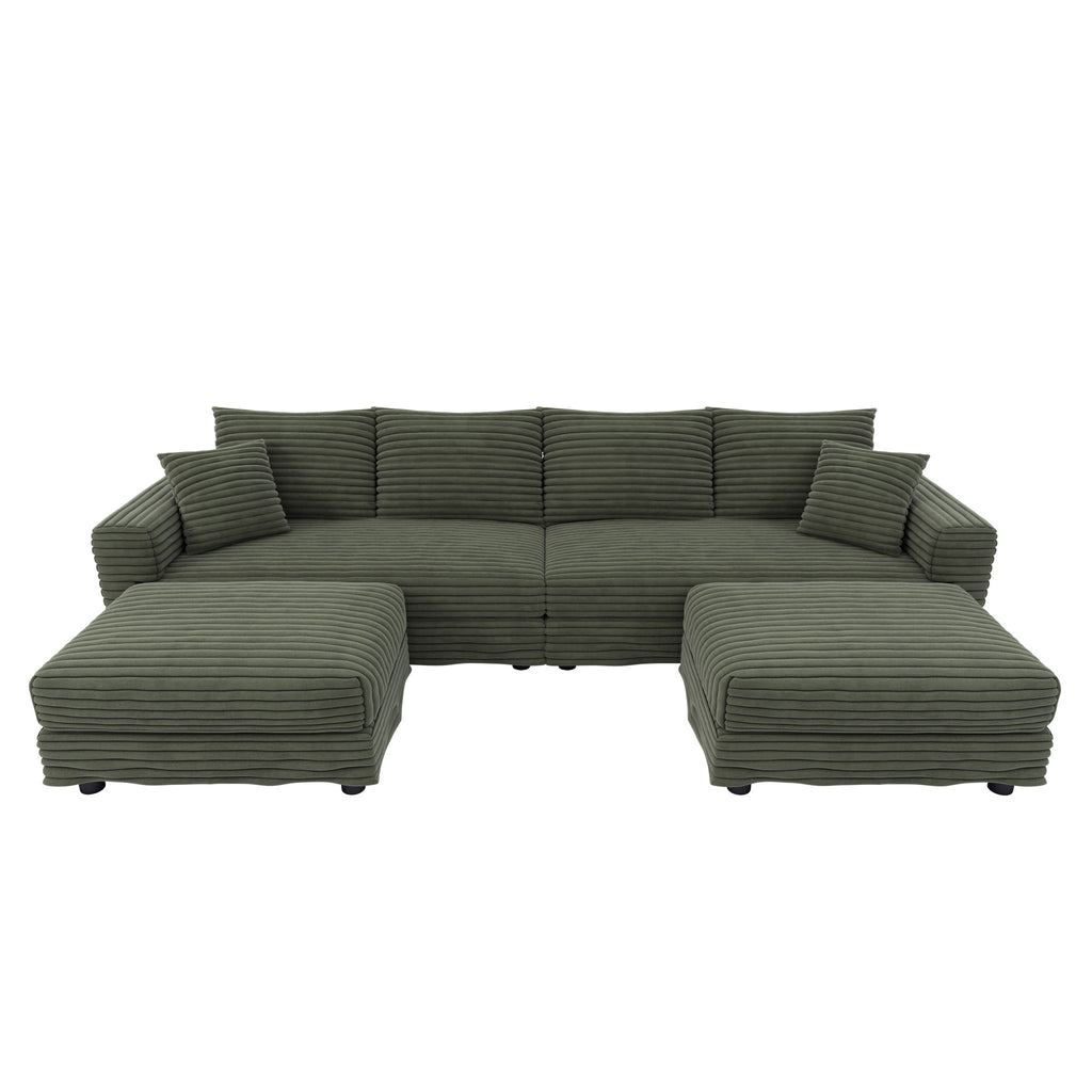 4 Seat Sofa, Comfy Upholstered Cloud Couch, Deep Seat With Soft Pillows And 2 Movable Ottomans, Convertible For Living Room - Green