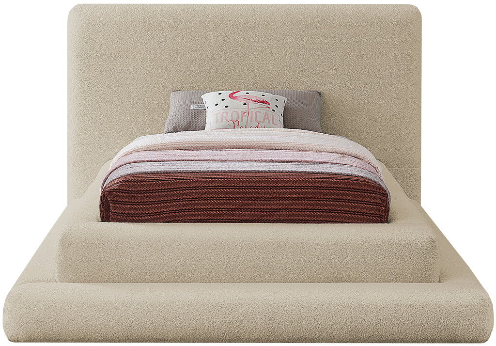 Bring a brand new look to your personal bedroom sanctuary with this Dane teddy fabric bed. The soft faux shearling teddy fabric feels gentle and soothing to your back as you read or watch TV in bed. Stacked frame design ensures a pleasantly modern aesthetic from every angle. Construction with premium engineered wood material ensures lasting quality and performance.
