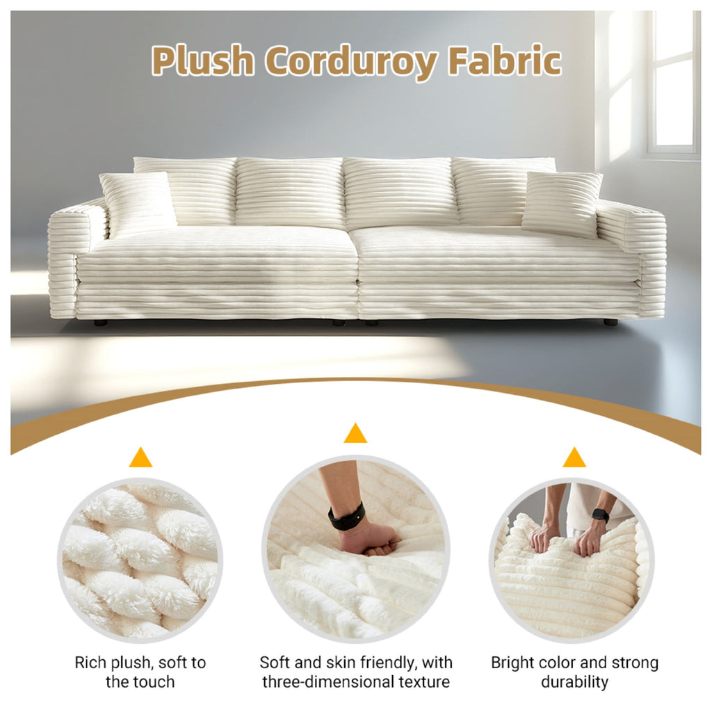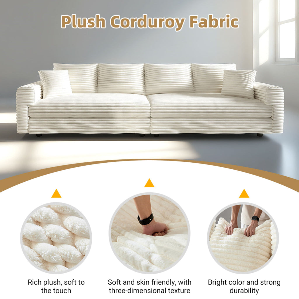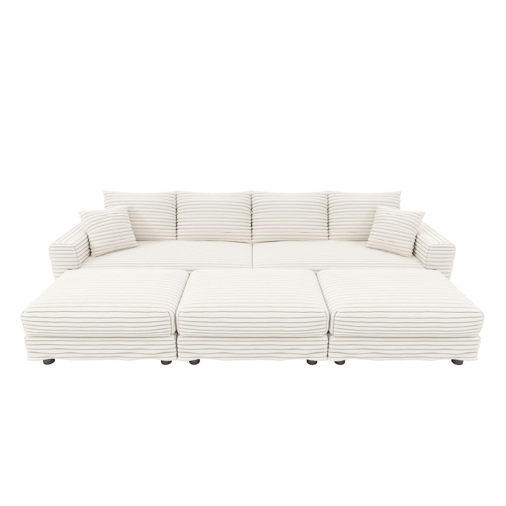Plush Corduroy 4 Seat Sofa, Modern Comfy Upholstered Sofa Cloud Couch, Deep Seat Couches With Soft Pillows And 3 Ottomans, Convertible Sofa Lounge Chair, For Living Room, Apartment, Office - Beige