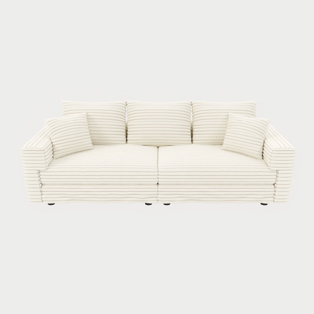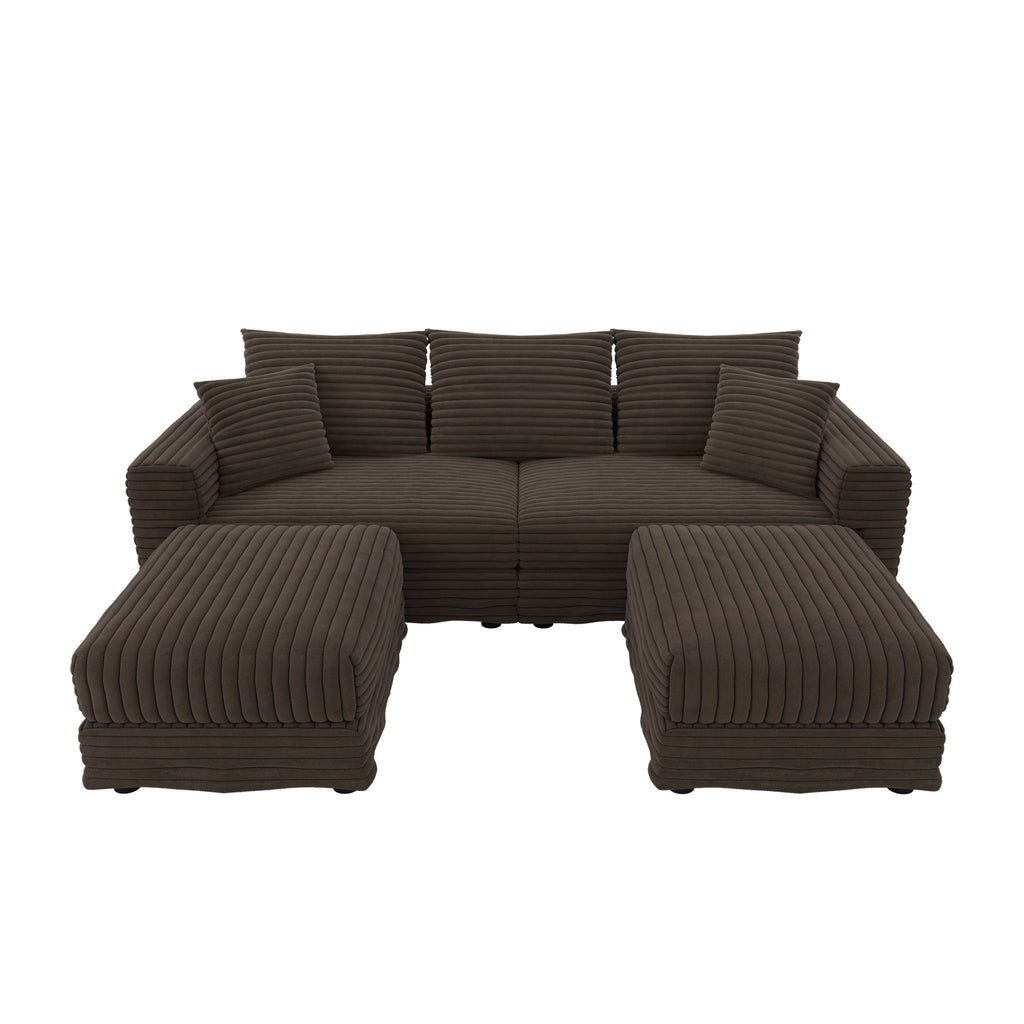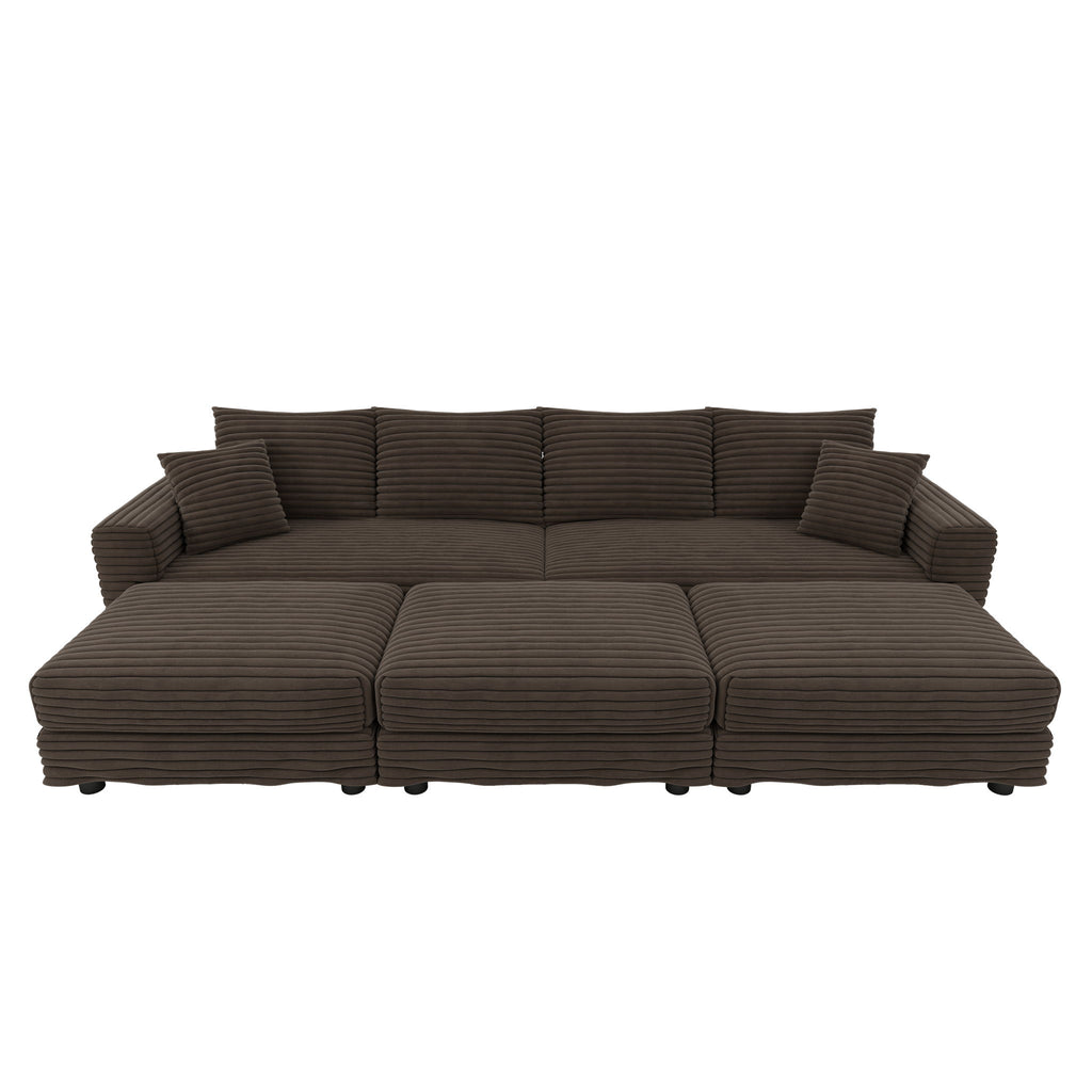 Plush Corduroy 4 Seat Sofa, Modern Comfy Upholstered Sofa Cloud Couch, Deep Seat Couches With Soft Pillows And 3 Ottomans, Convertible Sofa Lounge Chair, For Living Room, Apartment, Office - Beige
