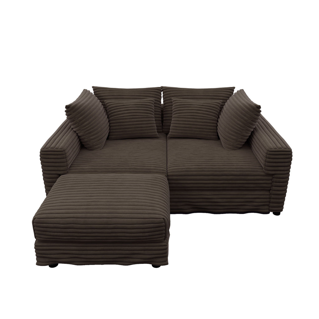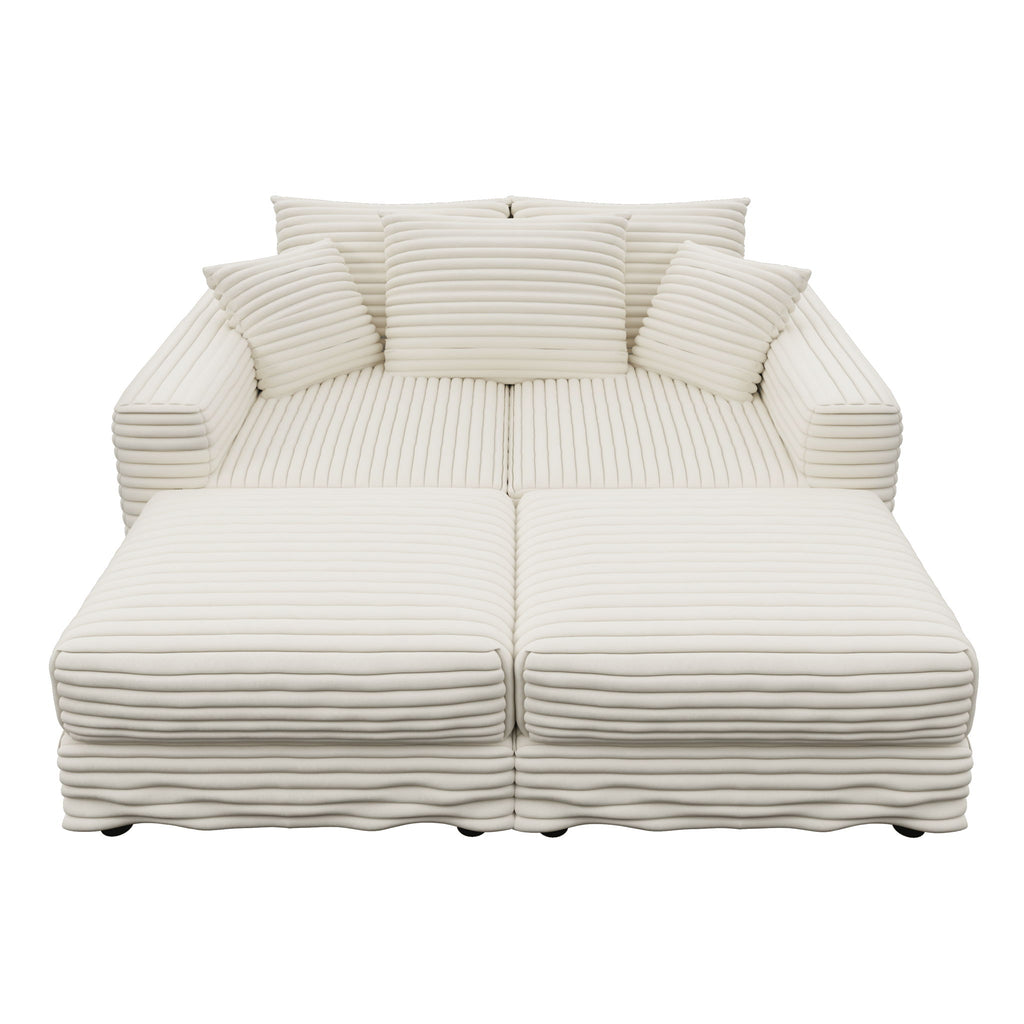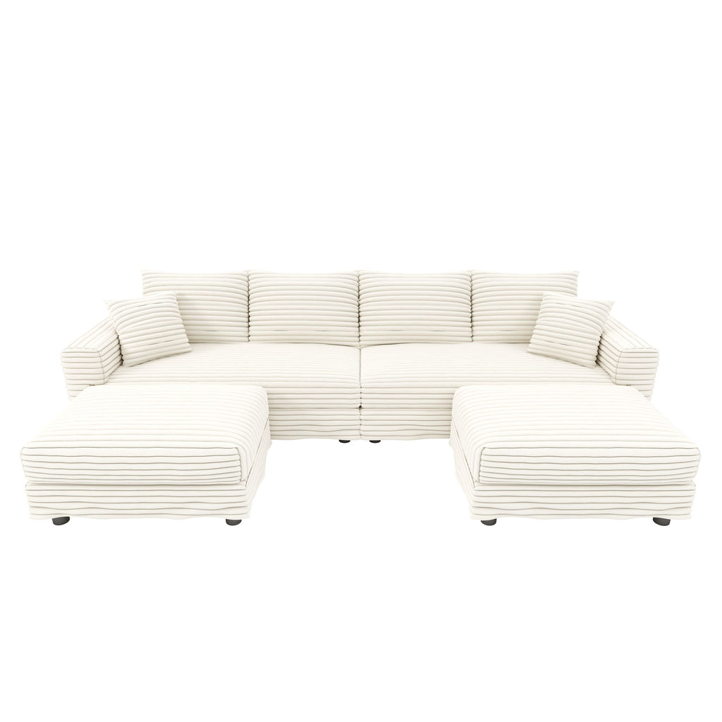 Plush Corduroy 4 Seat Sofa, Modern Comfy Upholstered Sofa Cloud Couch, Deep Seat Couches With Soft Pillows And 2 Ottomans, Convertible Sofa Lounge Chair, For Living Room, Apartment, Office - Beige