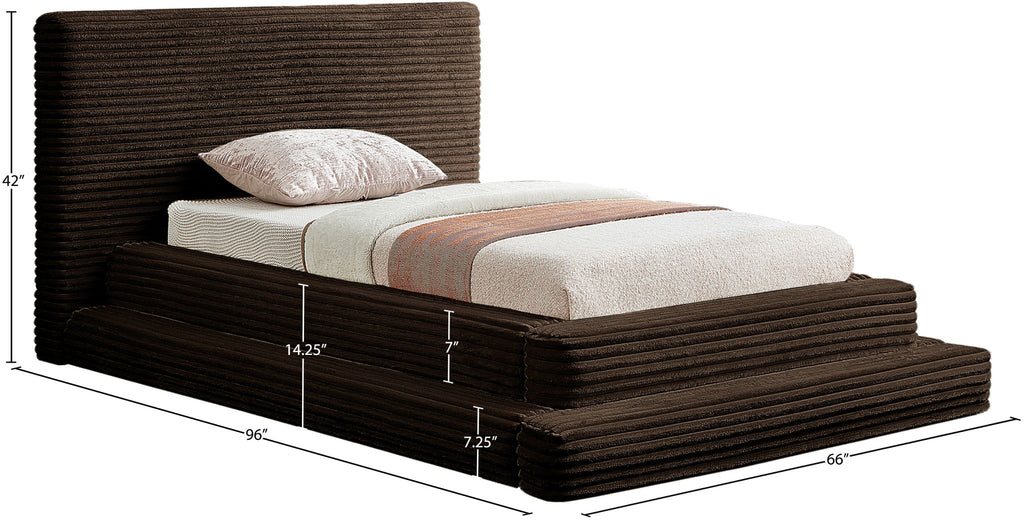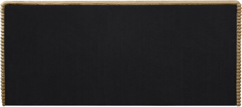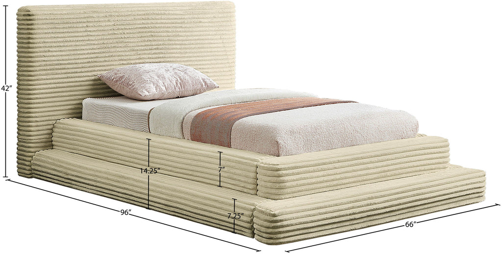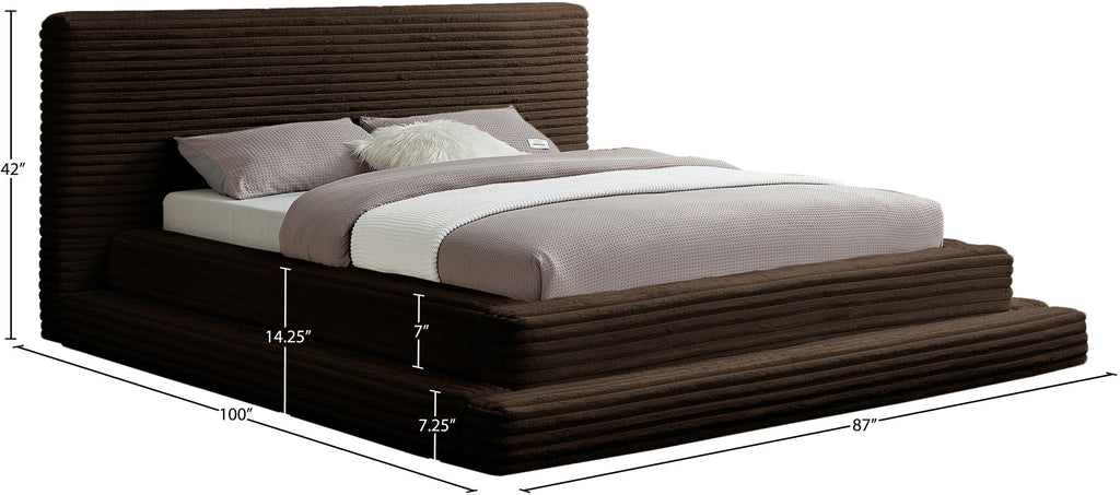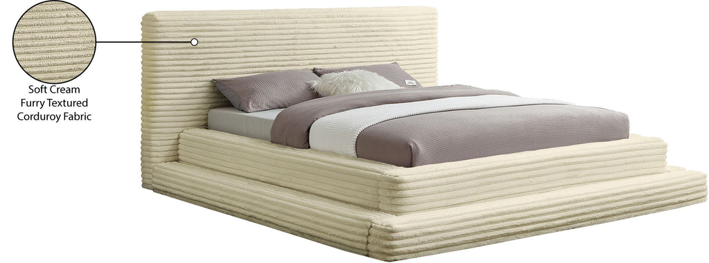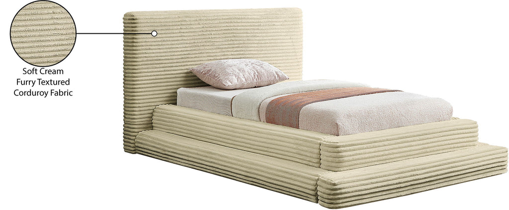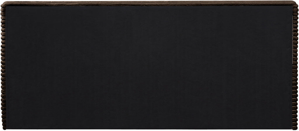 Sweet slumber comes easier when you're snuggled up in this Drew corduroy fabric bed. Upholstered in the softest furry textured corduroy fabric from top to bottom, this handsome bed looks just as cuddly as your favorite teddy bear. Simplistic by design, the bed features a triple tier design to give it added visual appeal. A high headboard lends a dramatic touch to this bed, making it a focal point in your bedroom sanctuary.