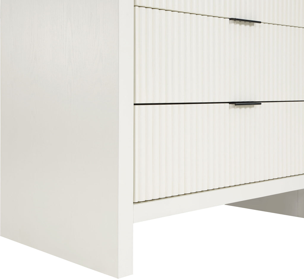 The exquisite Fairfax Chest is a perfect blend of style and functionality. The meticulously crafted fluted drawer fronts, with their subtle grooves, lend a touch of sophistication to the piece. The matte metal handles are not only visually appealing but also easy to grip, making it effortless to open and close the drawers. The chest is crafted from solid wood, providing a durable and sturdy construction. Its sleek finish enhances its modern and contemporary appeal, making it an exceptional addition to any living space.