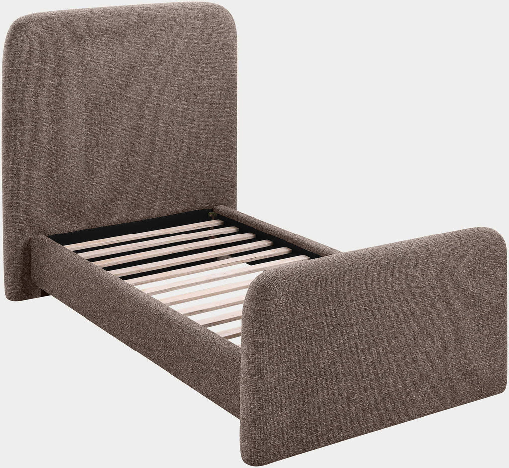 Fira - Linen Textured Fabric Upholstered Twin Bed - Brown