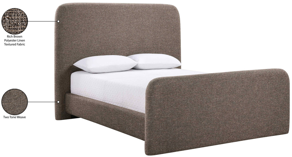 Fira - Linen Textured Fabric Upholstered Full Bed - Brown