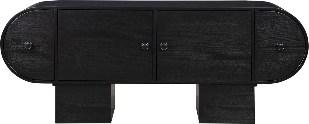 Relax knowing the things you need most are tucked out of sight and within easy reach with this Harlow sideboard/buffet. Its rich finish and oak veneer, crafted from a mix of solid wood and MDF, embody art deco elegance. Featuring natural wood grain variation, each piece is uniquely beautiful. Multiple drawers with an attractive pull offers discreet storage, blending practicality with timeless design. Enhance your living space with this sophisticated accent that combines function with exquisite craftsmanship.