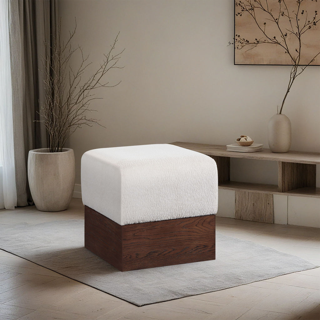 Havre - Ottoman / Stool With Brown Base - Cream