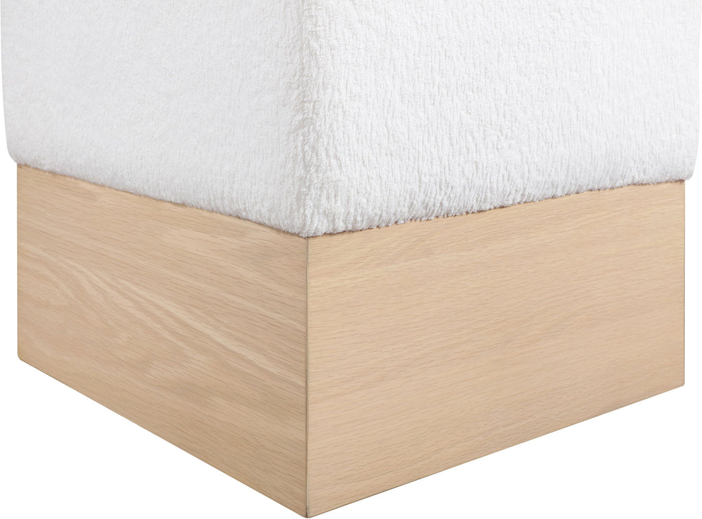 Effortlessly chic, the Havre velour fur fabric upholstered ottoman adds a luxurious and modern touch to any room. Wrapped in sumptuous velour fur fabric, this ottoman offers an ultra-soft feel and a sleek look with its rich natural wooden base. Its compact yet plush design makes it a versatile piece-ideal as a footrest, extra seating, or a stylish accent.