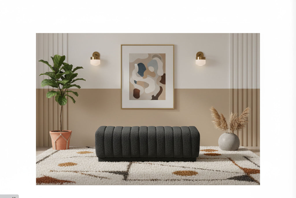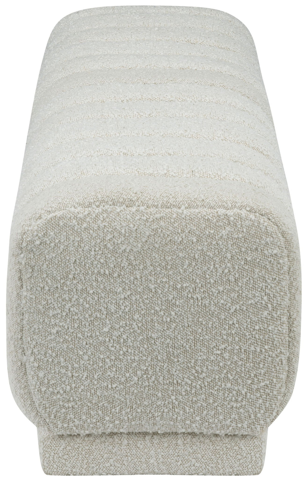 Place this lovely Heathrow ottoman at the foot of your bed or elsewhere to provide impromptu seating when you need it most. This elegant ottoman features rich boucle fabric covering every inch of its exterior, so its soft and welcoming to the touch. Deep channel tufting gives the ottoman texture while adding to its overall durability and longevity. The neutral color makes this ottoman/bench a fitting addition to nearly any space.