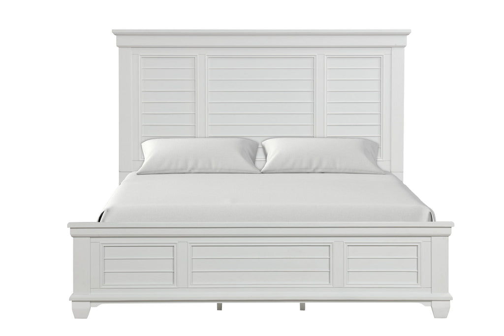The Jamestown Panel Bed with Storage Footboard is a perfect fusion of durability, style, and functionality for your bedroom. This bed is expertly crafted from solid Acacia, premium manufactured woods, and authentic Oak veneers, ensuring long-lasting durability while maintaining the natural beauty of real wood. The Jamestown collection reflects modern coastal charm, featuring clean, contemporary lines and a crisp finish that brightens any space and captures the serene essence of coastal living. The bed's storage footboard offers chic and practical storage solutions, helping to keep your bedroom tidy and organized. Thoughtfully designed with clean lines and elegant panel detailing, this bed not only provides essential storage but also enhances your room's overall ambiance with its sophisticated style.