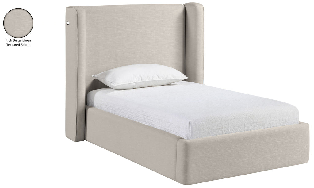Kendall - Linen Textured Fabric Upholstered Twin Bed - Beige