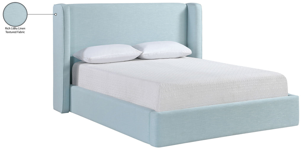 Kendall - Linen Textured Fabric Upholstered Queen Bed - Light Blue