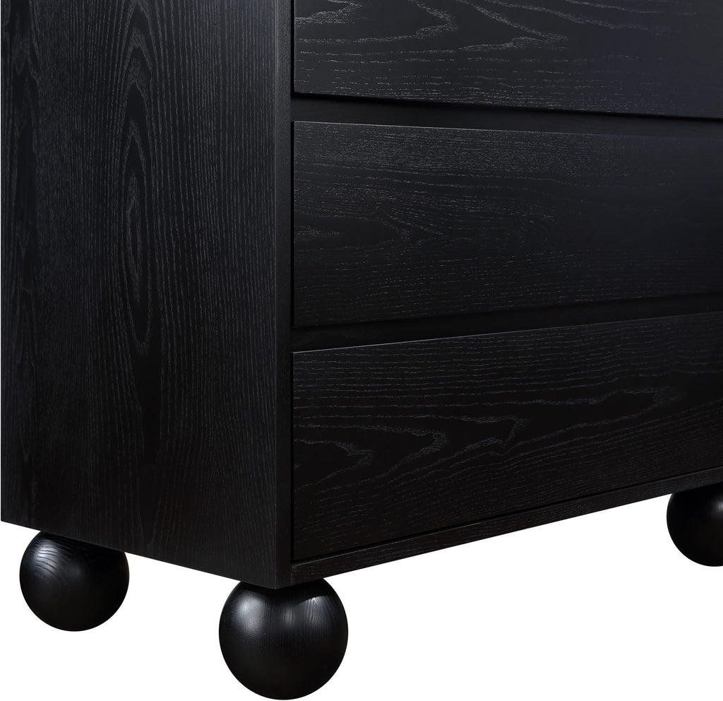 Revamp your bedroom with the sleek design of the Kent Chest. Crafted from solid ash wood and finished in a rich, deep hue, this chest features clean lines and a minimalist design that is sure to impress. The ball-shaped legs add a touch of luxury and elegance, creating a truly timeless look that will enhance any living space. Whether you're looking for a stylish storage solution for your bedroom or a statement piece for your living room, the Kent Black Chest is the perfect choice.
