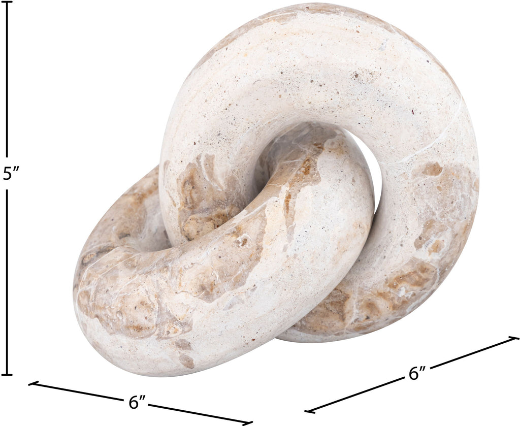 Interlocking curves and lush capri marble give the Knot decorative accessory its sculptural charm. Handcrafted from genuine stone, each piece showcases unique veining and natural variations that make it one of a kind. Whether styled on a console or coffee table, it brings bold texture and art deco energy to any surface.