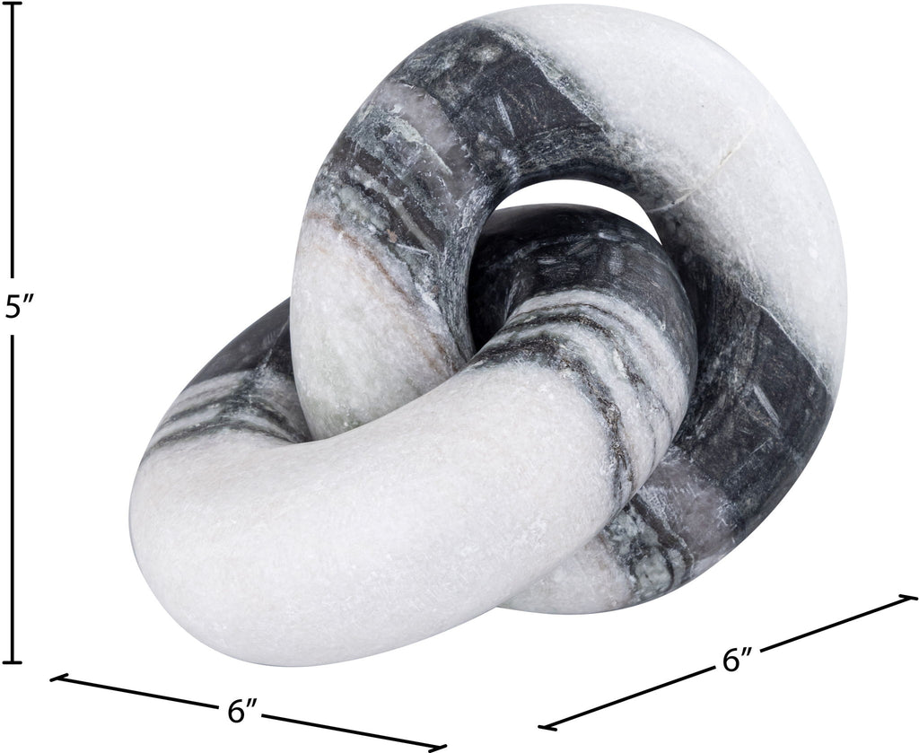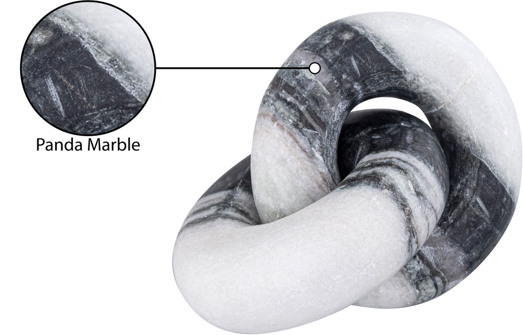 Interlocking curves and lush panda marble give the Knot decorative accessory its sculptural charm. Handcrafted from genuine stone, each piece showcases unique veining and natural variations that make it one of a kind. Whether styled on a console or coffee table, it brings bold texture and art deco energy to any surface.