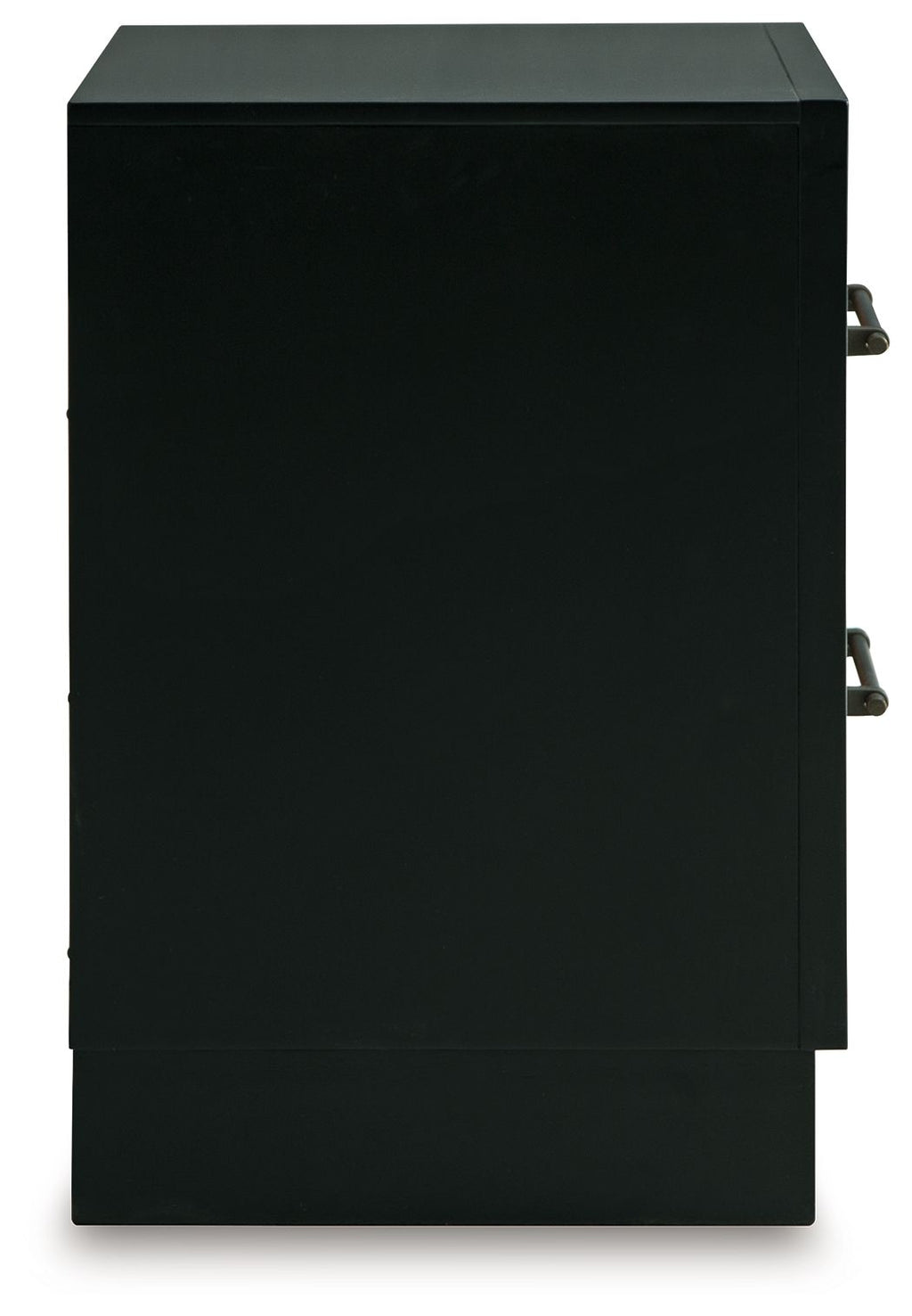 Experience the captivating allure of this nightstand, an effortless blend of casual and refined aesthetics. Its two-tone finish combines satin black with a rich brown wood tone for a modern, relaxed vibe that you'll love waking up to. Perfectly suited for your contemporary home, this nightstand has plenty of drawer space to tuck away your bedside essentials.