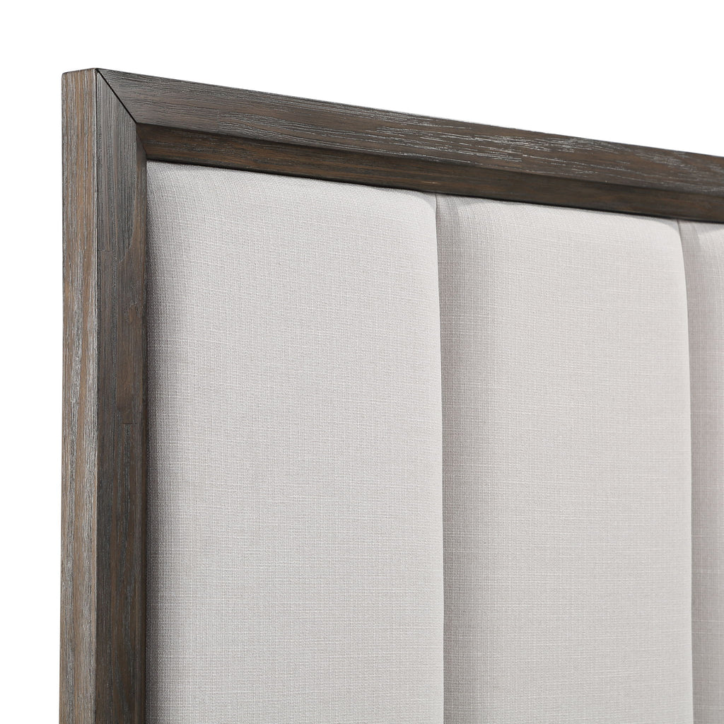 The Landon Storage Platform Bed combines durability, style, and practicality to enhance any modern bedroom. Expertly crafted from solid Pine, high-quality engineered woods, and genuine Mindi wood veneers, this bed is built to last while preserving the natural beauty of wood with its multi-step finish and subtle gray undertones. The plush, channeled-back headboard, upholstered in natural fabric, offers cozy relaxation and a refined contrast to the bed’s warm tones. For added convenience, the storage footboard includes two spacious drawers, ideal for stowing away linens, clothing, or other essentials. Designed with modern living in mind, the platform bed features 13 sturdy support slats that provide reliable mattress support without the need for a box spring, ensuring a sleek, low-profile appearance. The Landon Storage Bed is a perfect blend of style and function, making it an excellent addition to any bedroom.